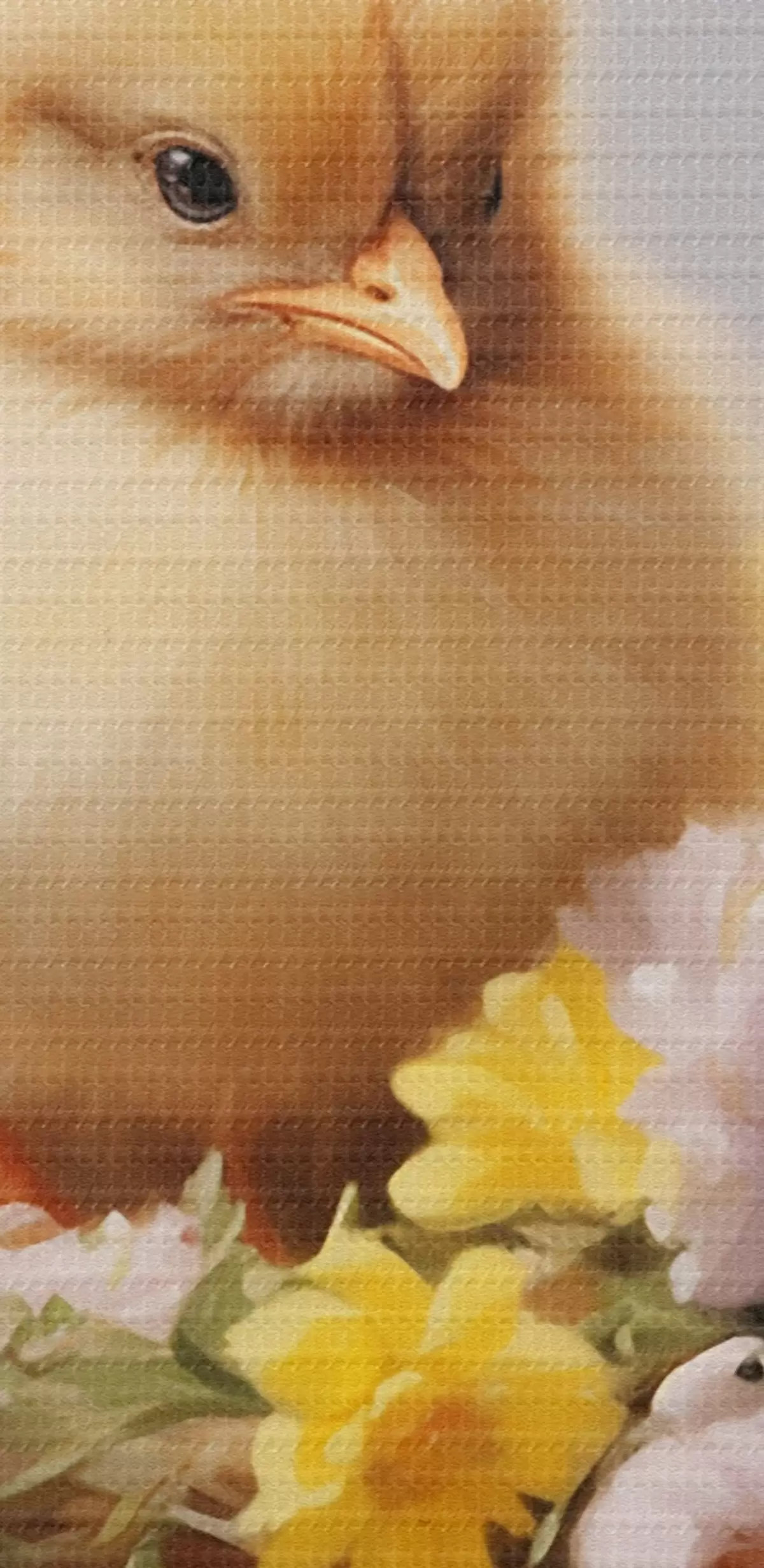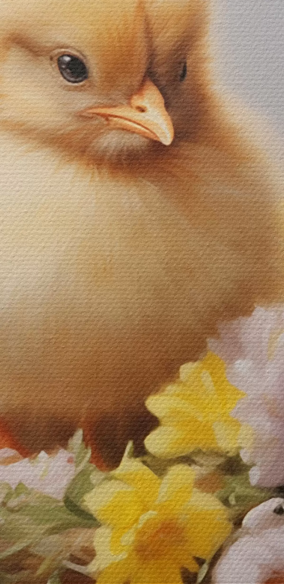 Schilderij Geel kuiken in een mand met wilde bloemen Art. s44384