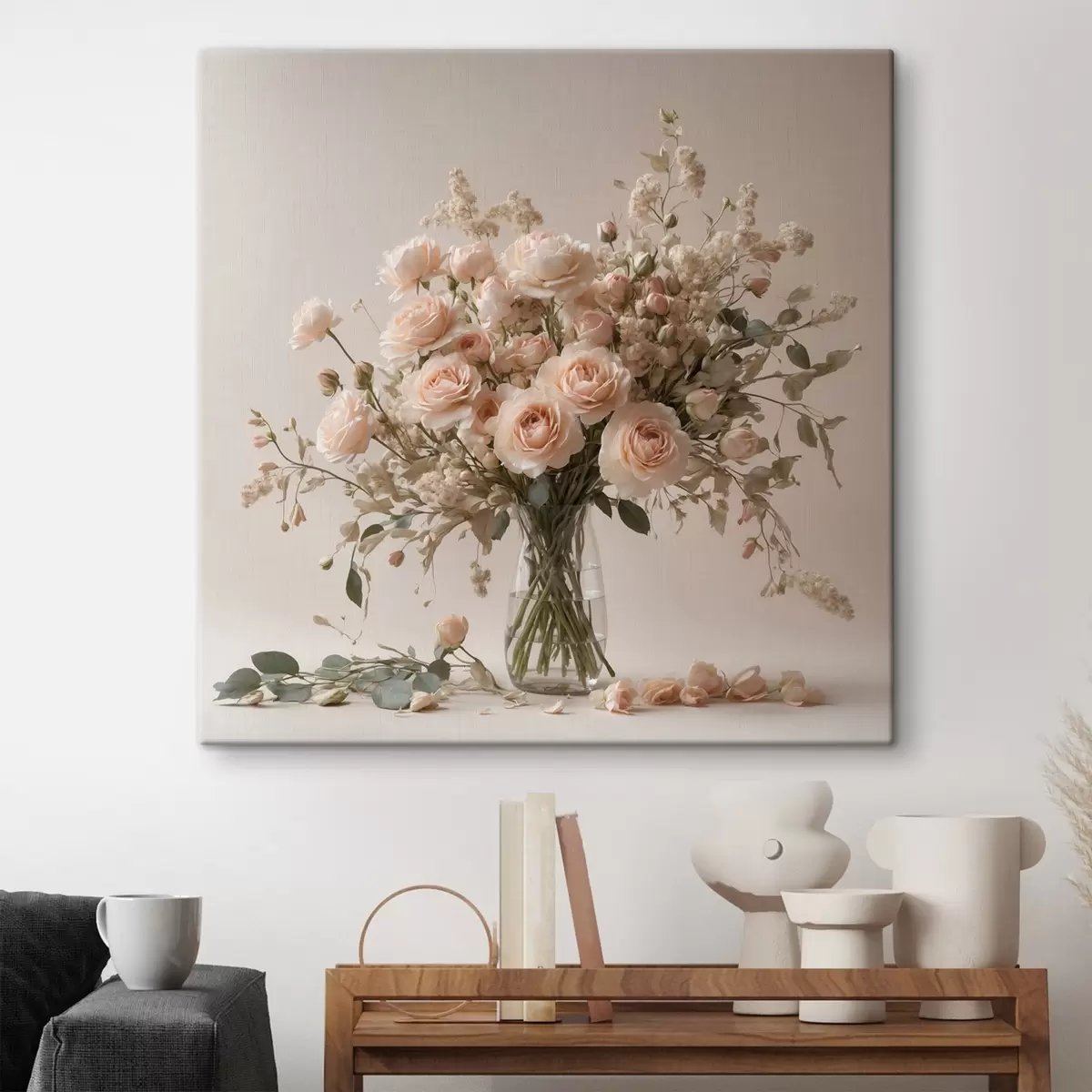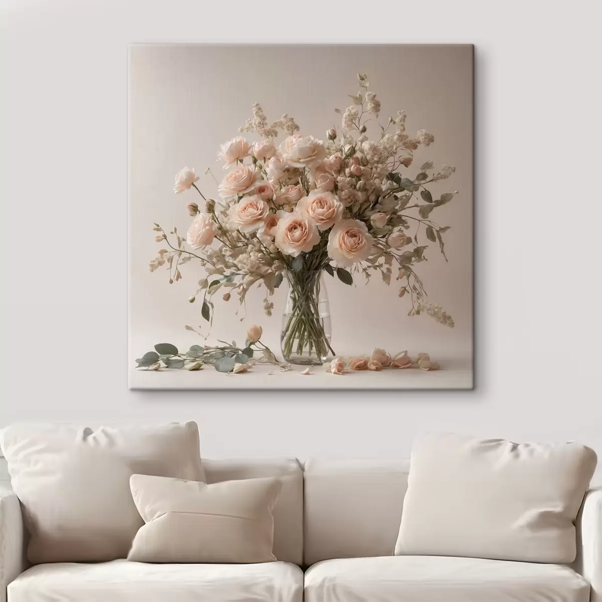 Schilderij Witte rozen in transparante vaas Art. s44451