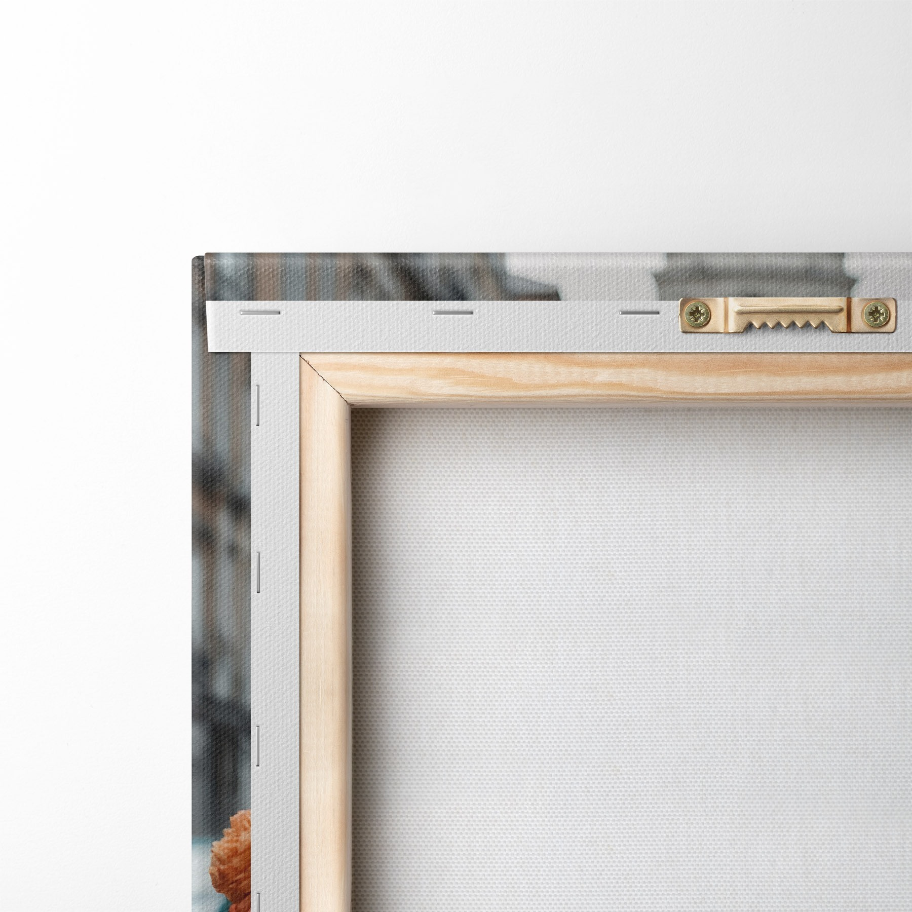 Je kunt het schilderij ophangen aan schroeven. Hiervoor leveren we bevestigingen bij onze foto's, zodat je de foto gemakkelijk kunt ophangen.