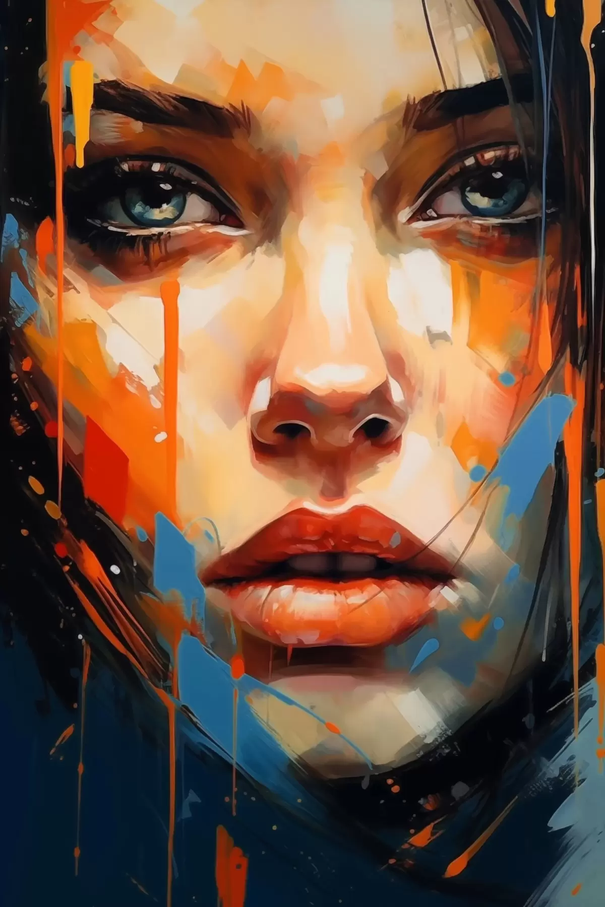 Schilderijen Vrouwengezicht met heldere streken s44485