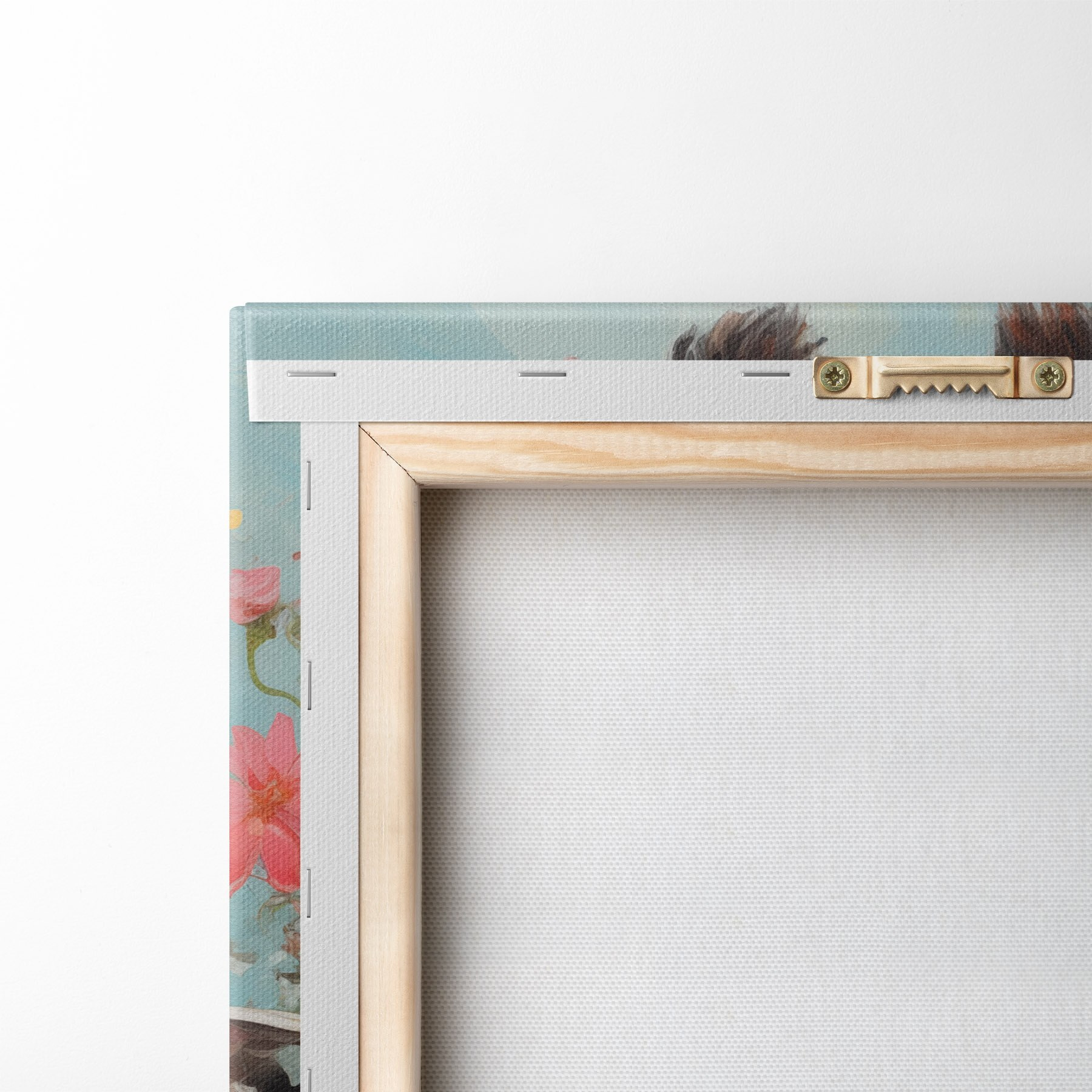 Om het doek op te spannen op spielatten zonder de afbeelding te beschadigen, gebruiken we gespiegeld beeld.