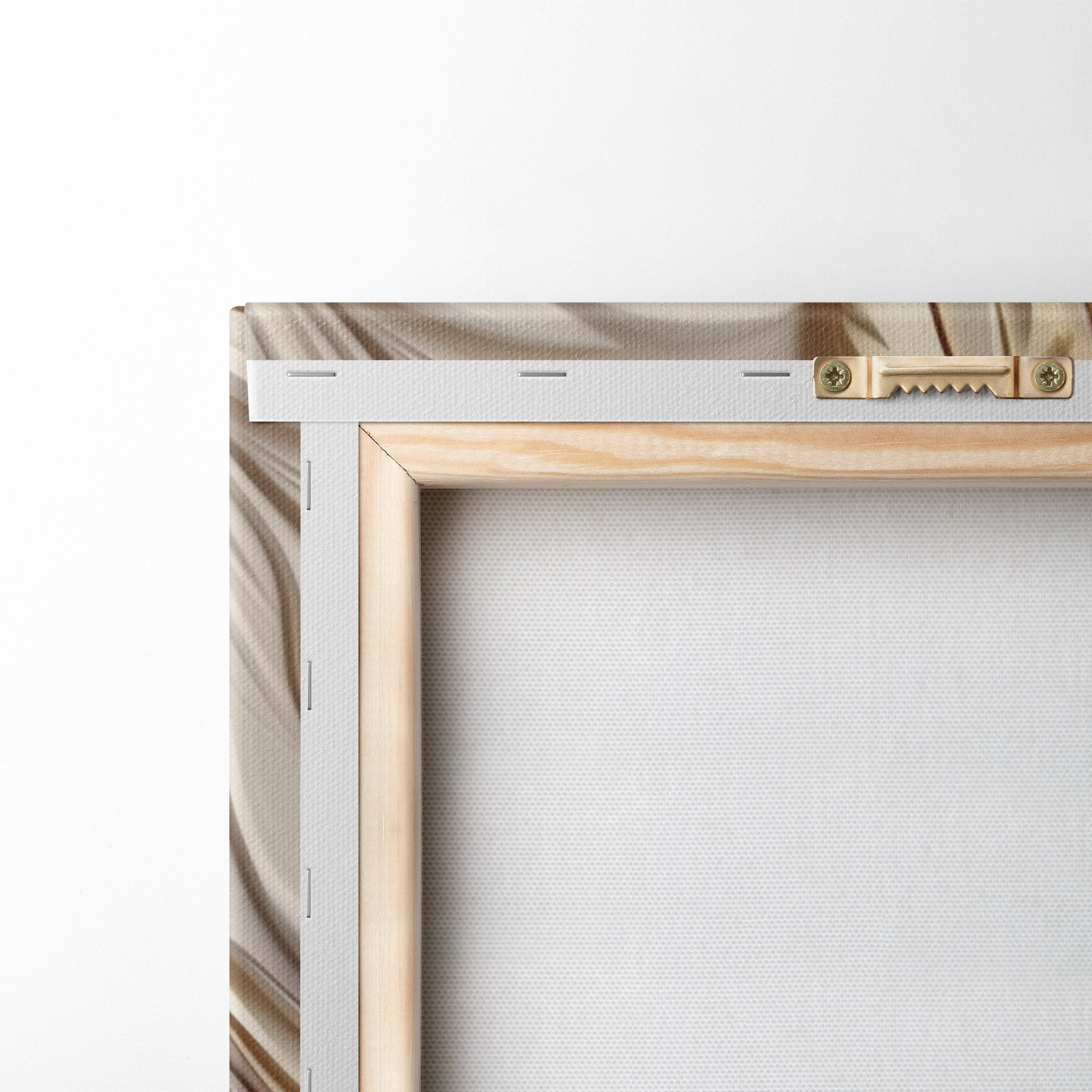 Om het doek op te spannen op spielatten zonder de afbeelding te beschadigen, gebruiken we gespiegeld beeld.