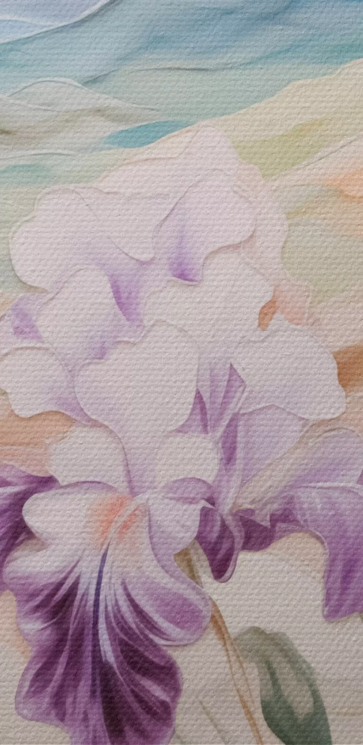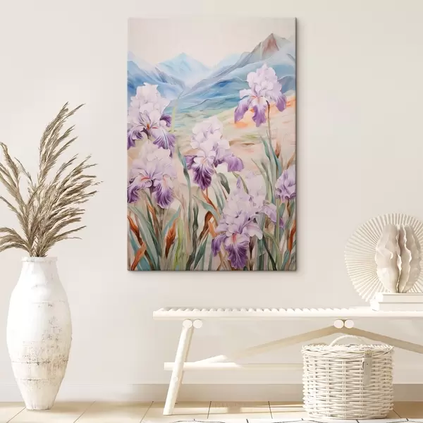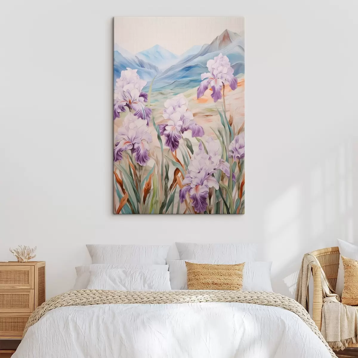 Schilderij Irissen tegen de achtergrond van bergen Art. s44599