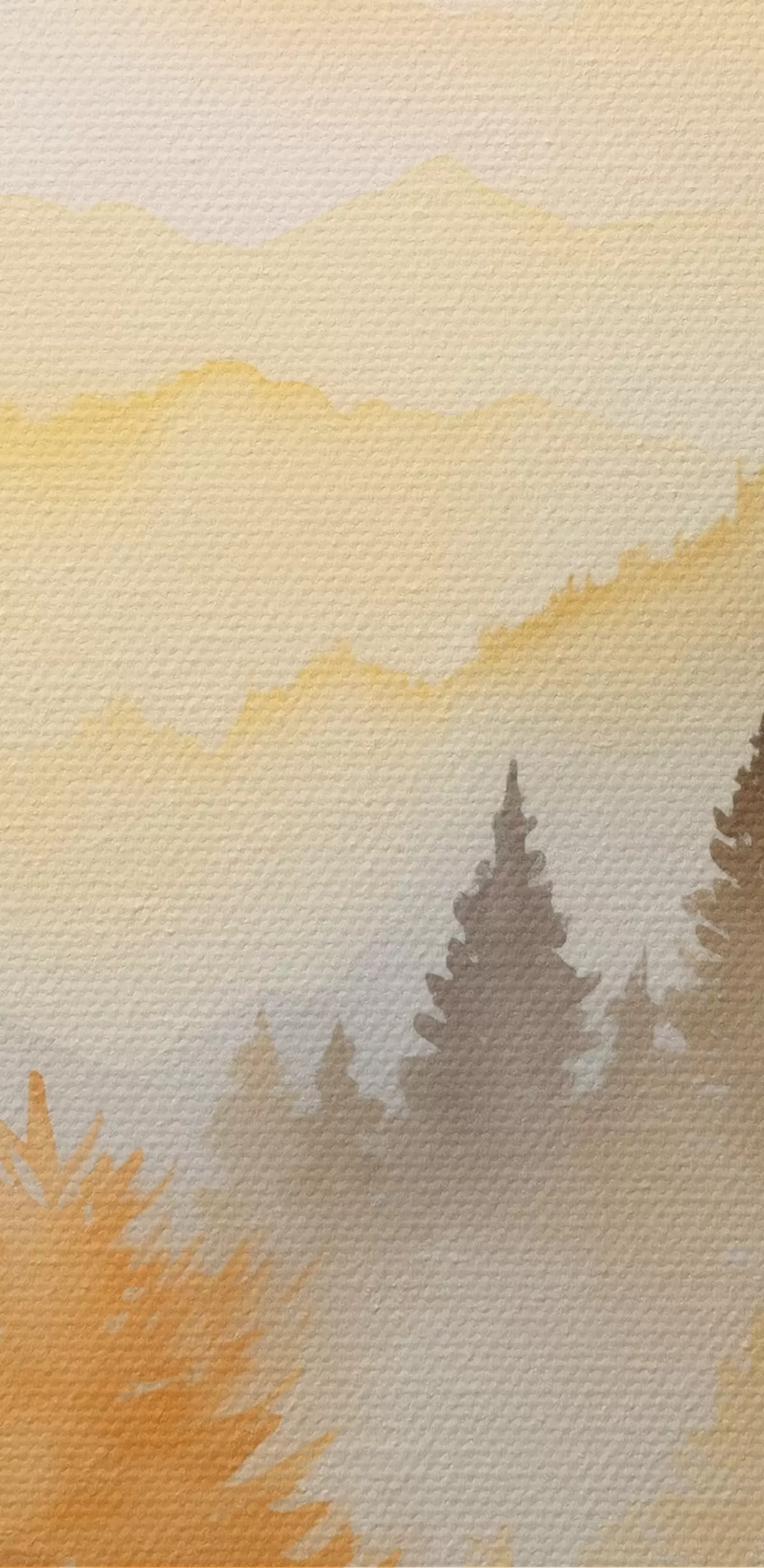Schilderijen Prachtig herfstbos met bergen op de achtergrond s44614