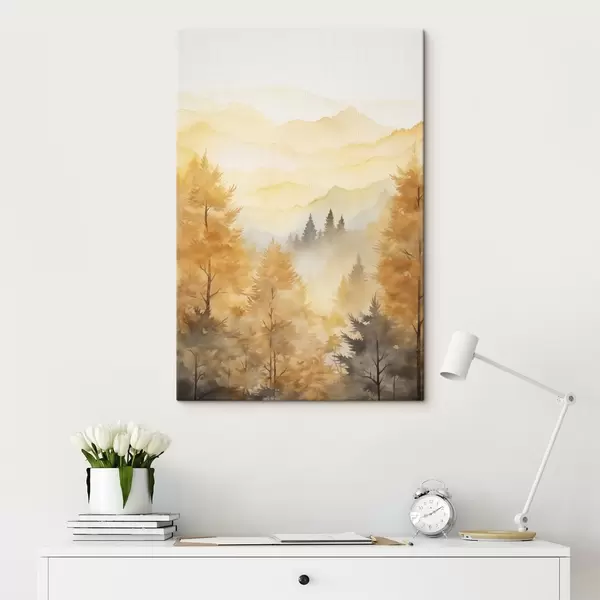 Schilderij Prachtig herfstbos met bergen op de achtergrond Art. s44614