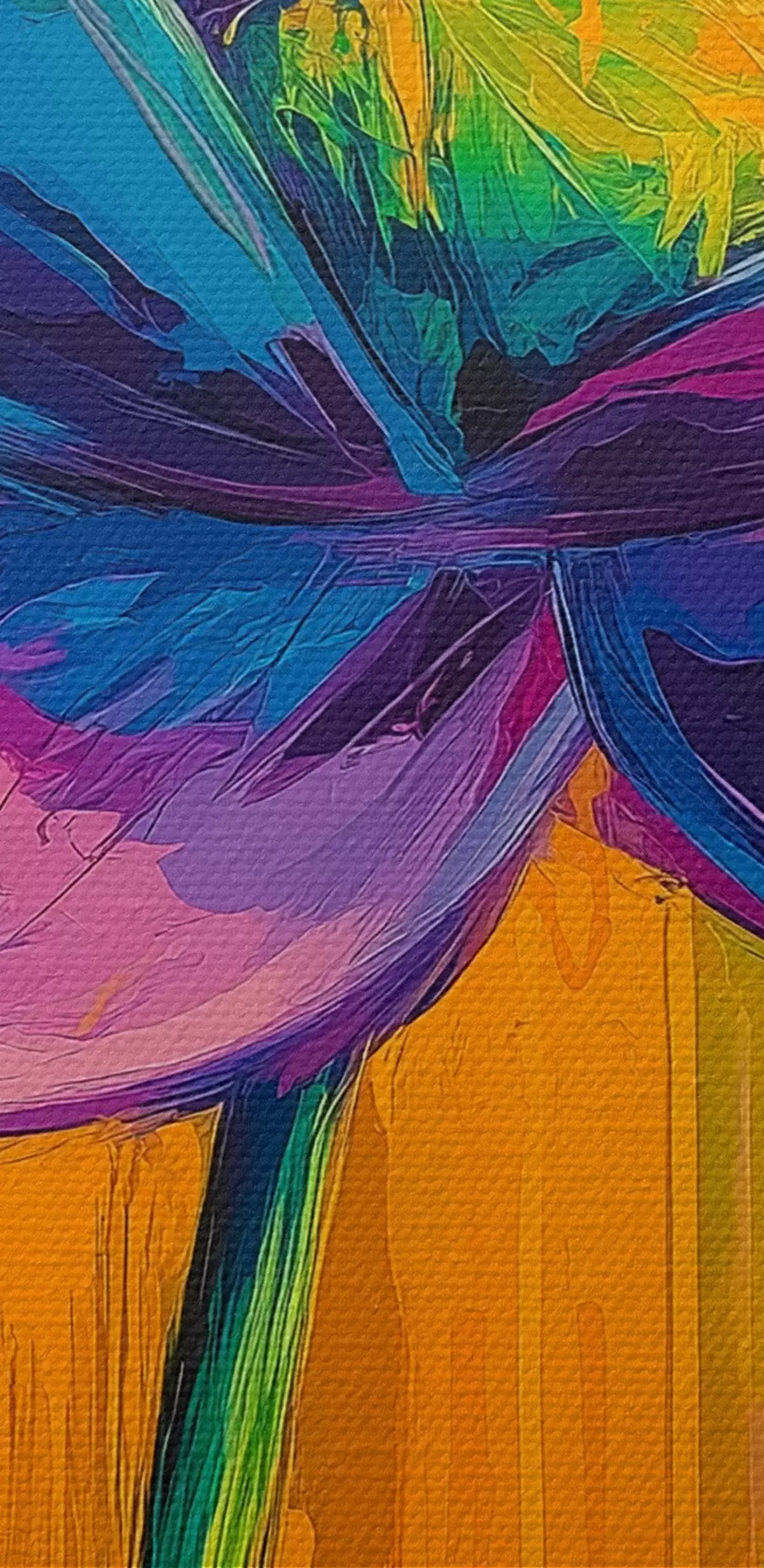 Het schilderij kan direct na ontvangst worden opgehangen. Het schilderij wordt opgespannen op een 2 cm breed houten spieraam.