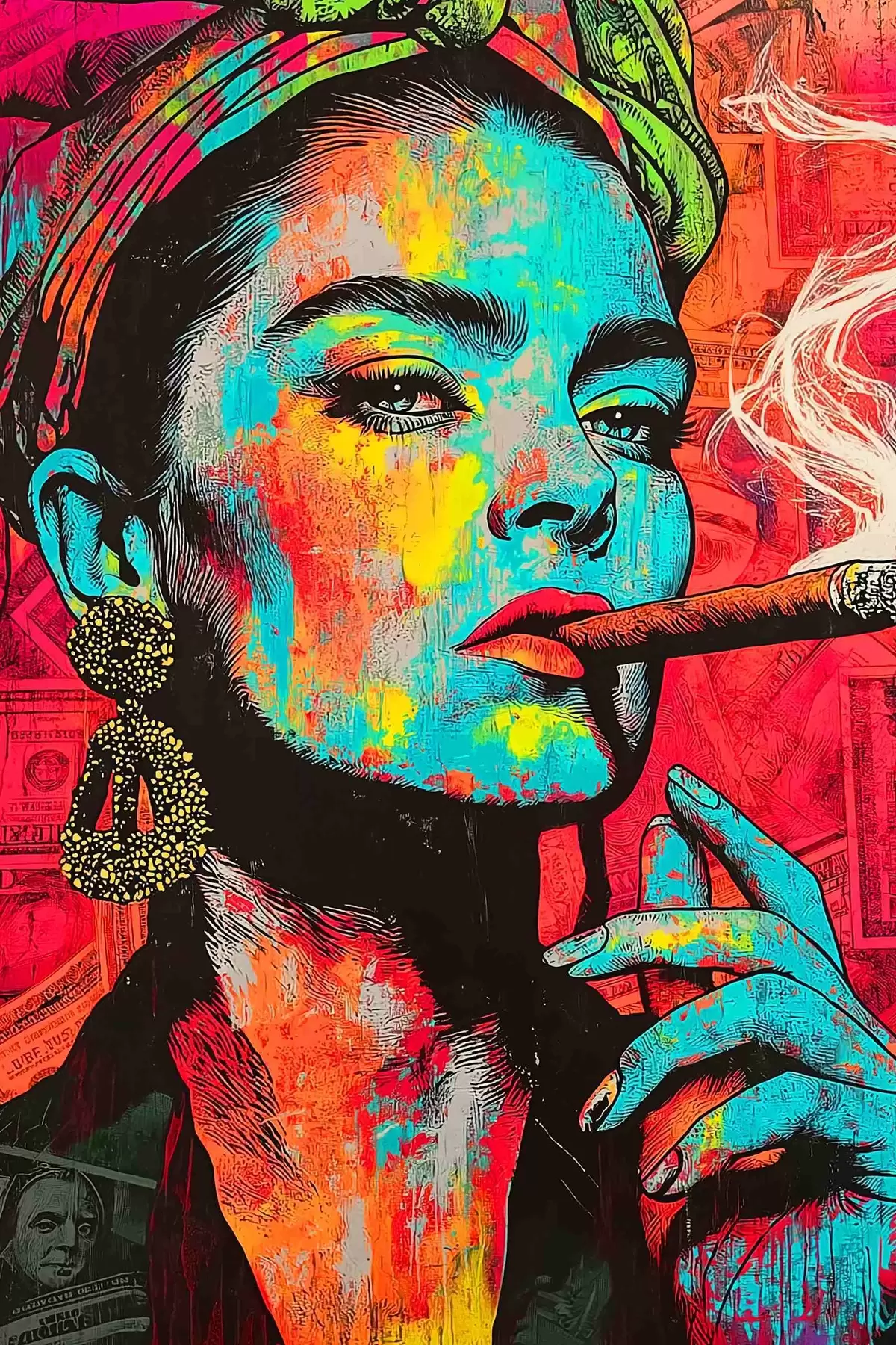 Schilderij Meisje met sigaar, pop-artstijl Art. s44625