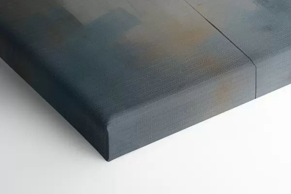 De fijne weving van draden op dit doek lijkt op het oppervlak van professionele schildersdoeken.