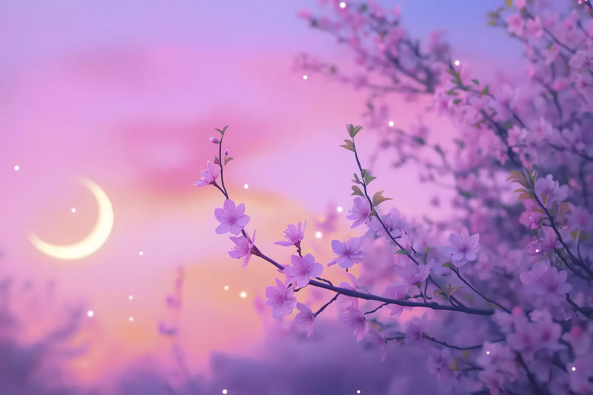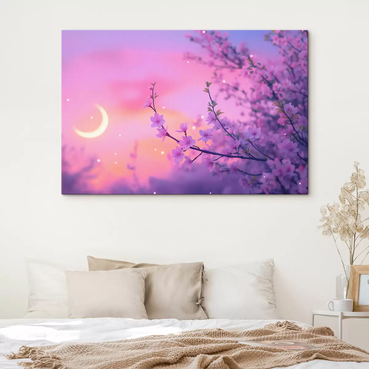Schilderijen Paarse lucht met maan en kersenbomen s44717