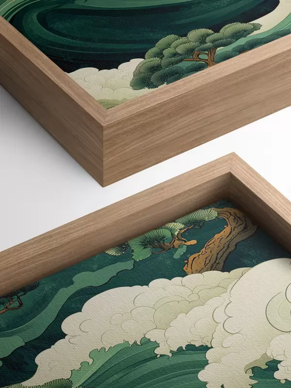 Schilderij Tekening in Chinese stijl met zeegolven en pijnbomen Art. s44719