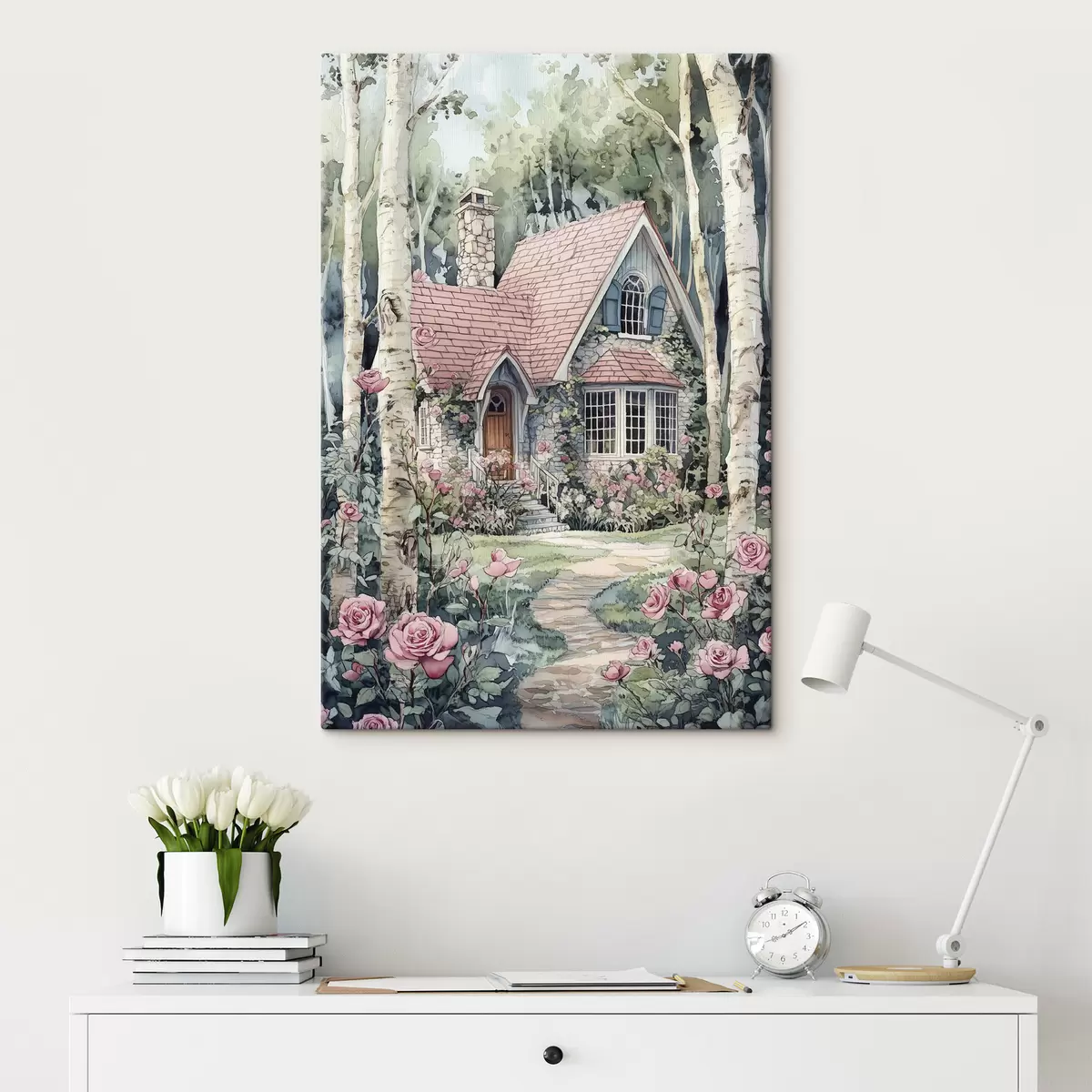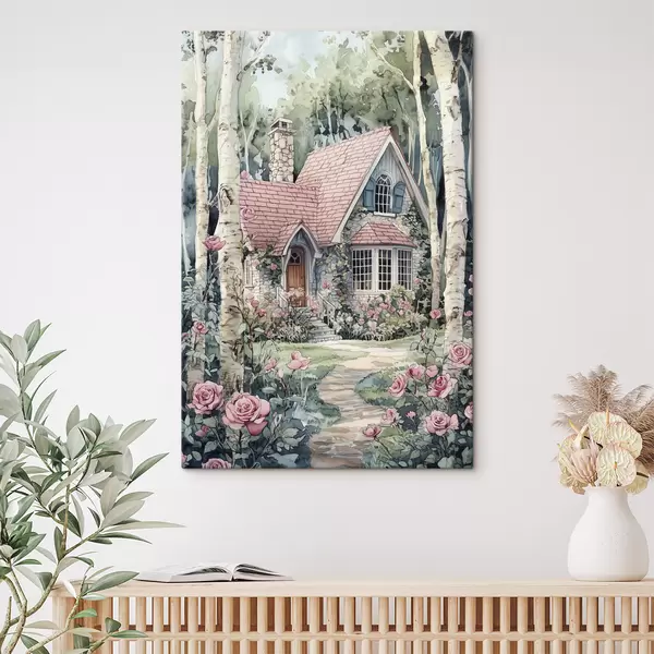 Schilderij Mooi huis tussen de berken, rozentuin Art. s44721