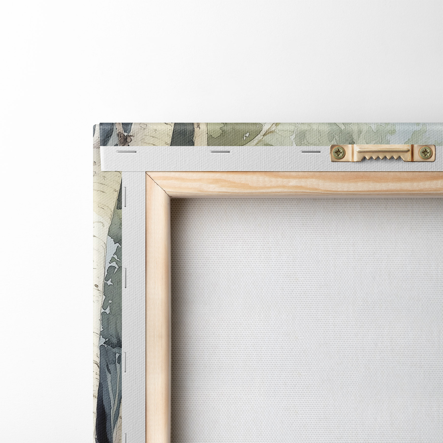 Om het doek op te spannen op spielatten zonder de afbeelding te beschadigen, gebruiken we gespiegeld beeld.
