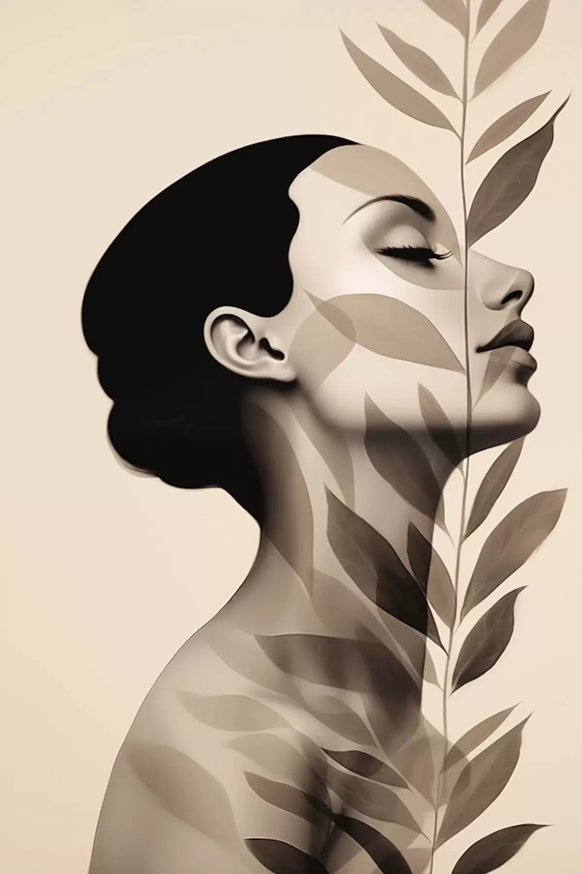 Schilderij Vrouwelijk profiel met bloemenpatroon Art. s44725
