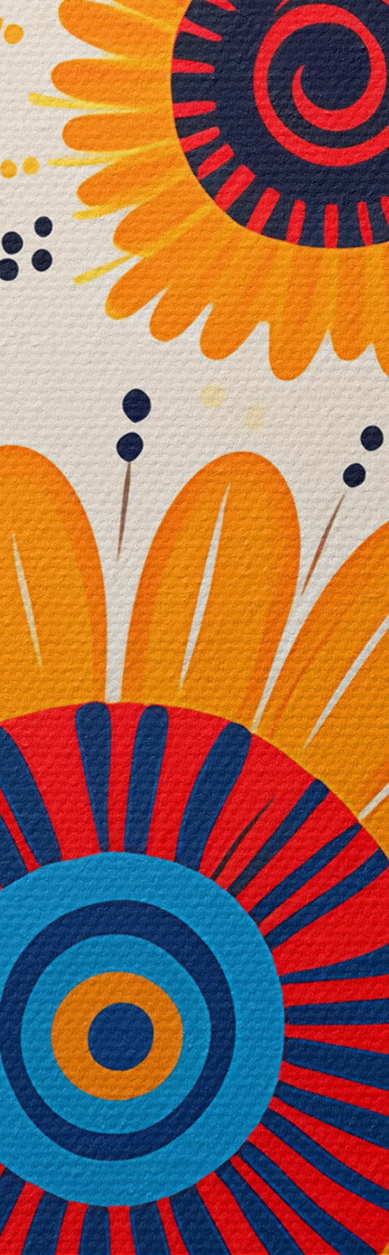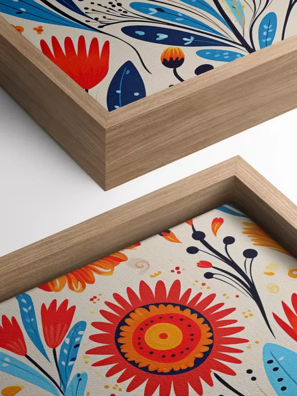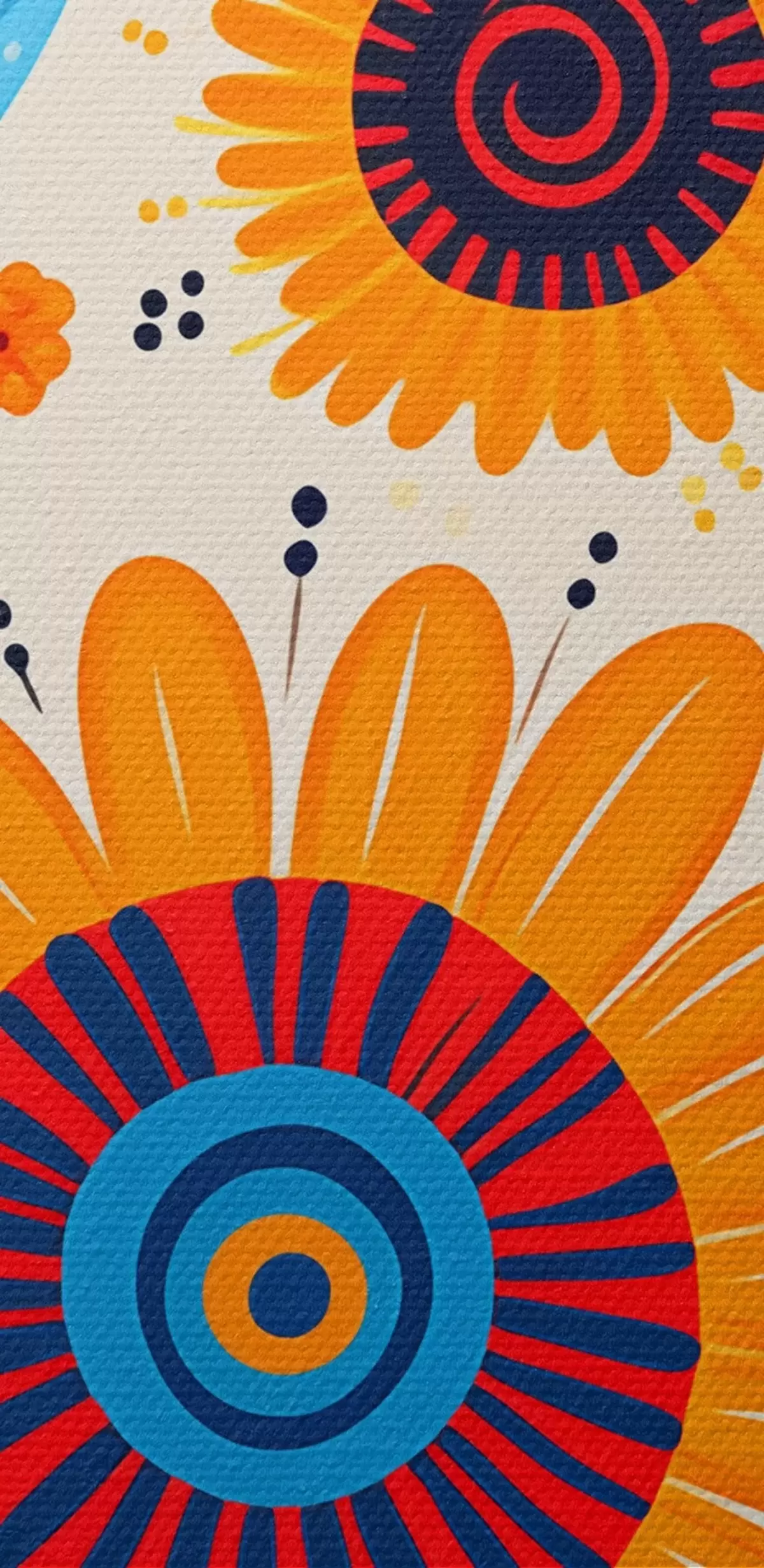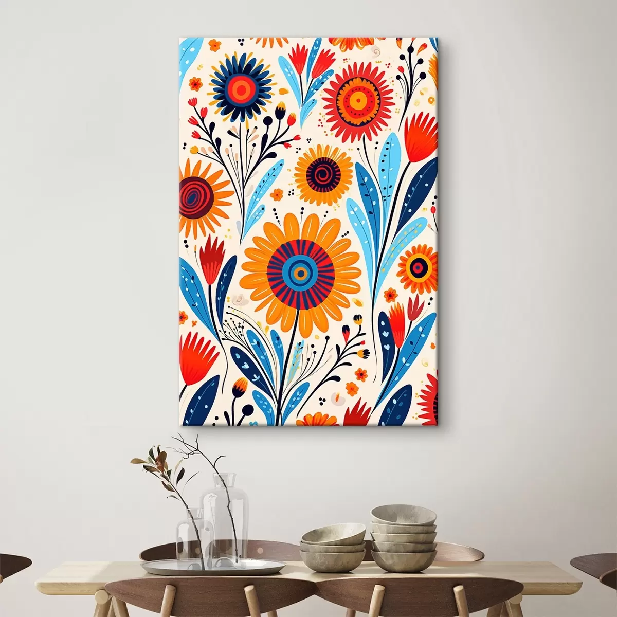 Schilderij Gestileerde bloemen in blauw en oranje palet Art. s44761