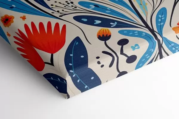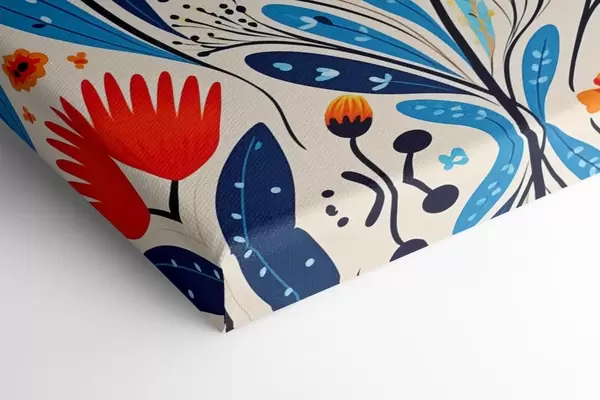 Schilderij Gestileerde bloemen in blauw en oranje palet Art. s44761