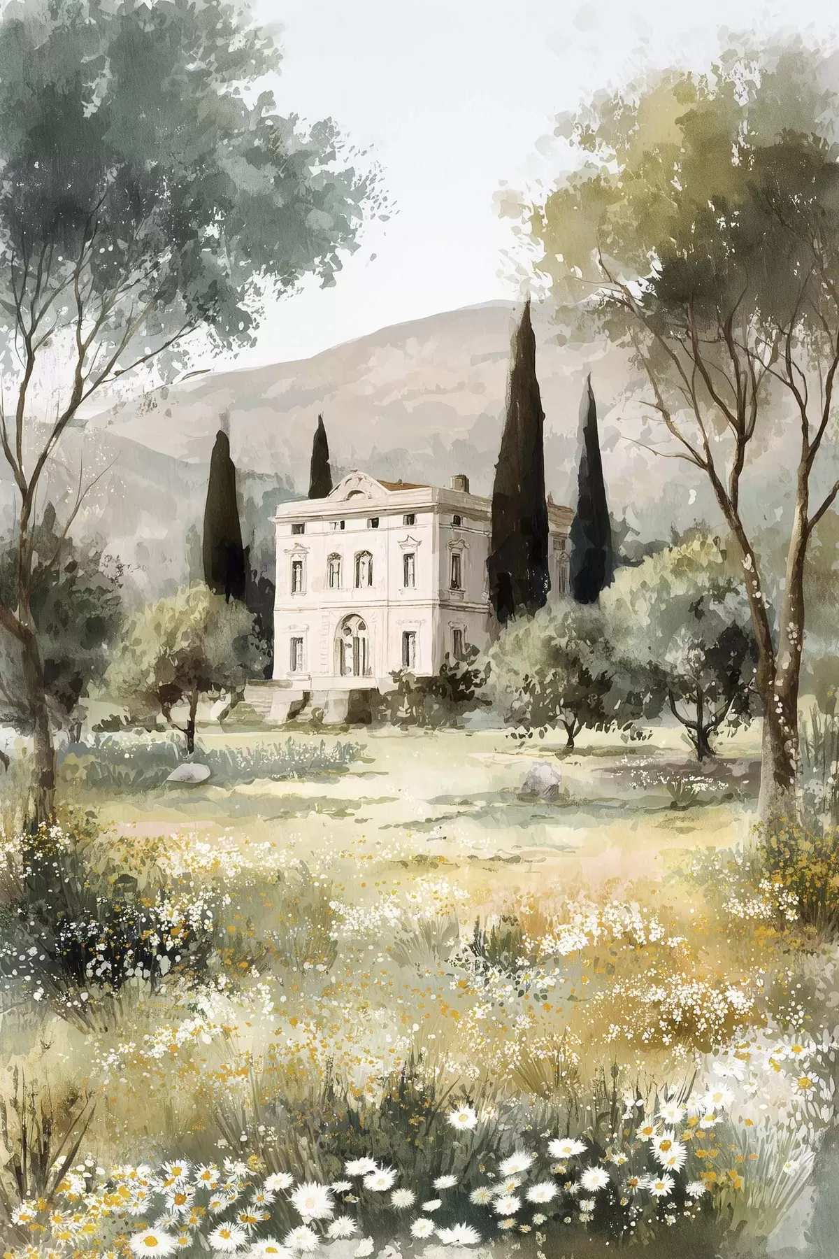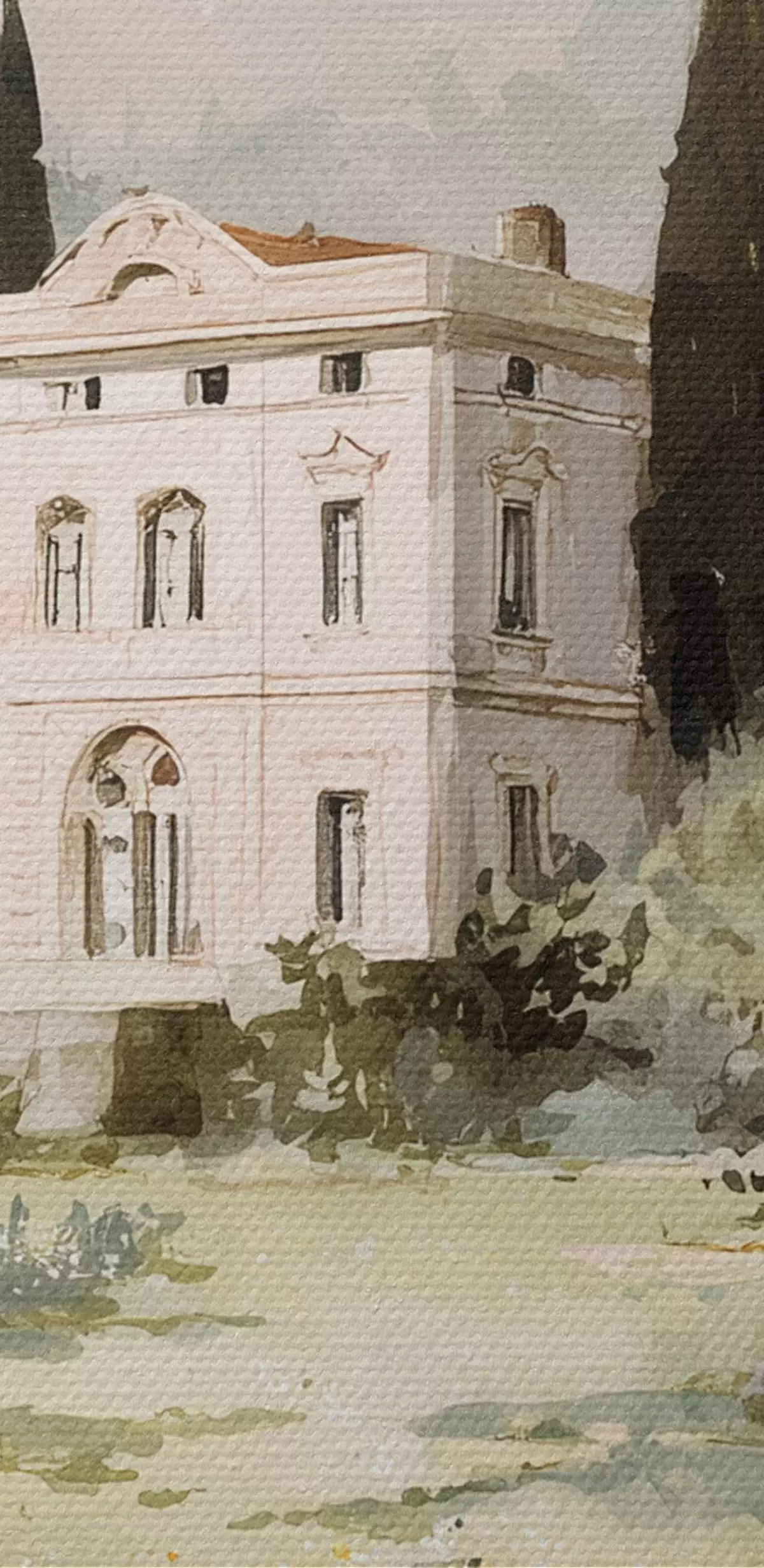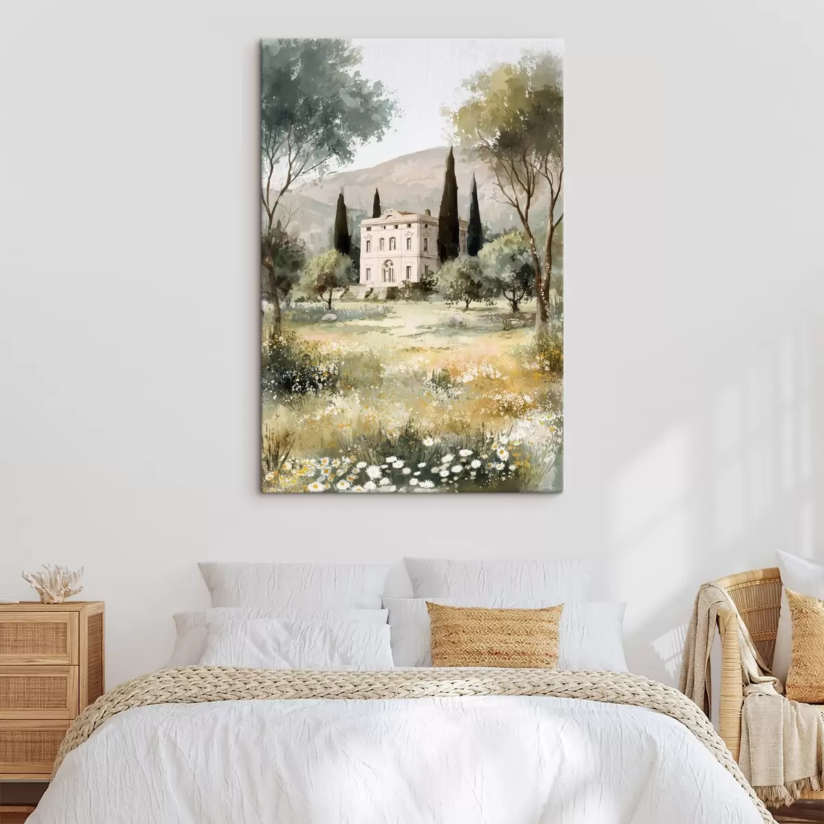 Schilderij Mediterraans dorp met wit huis omringd door tuin Art. s44796