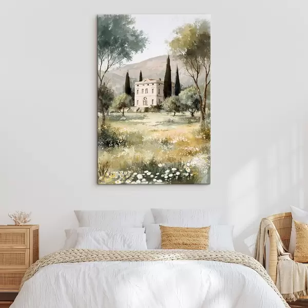 Schilderij Mediterraans dorp met wit huis omringd door tuin Art. s44796