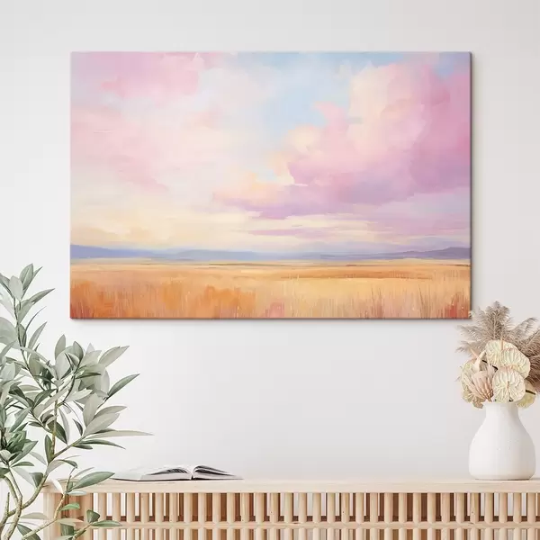 Schilderij Roze lucht boven een veld Art. s44810