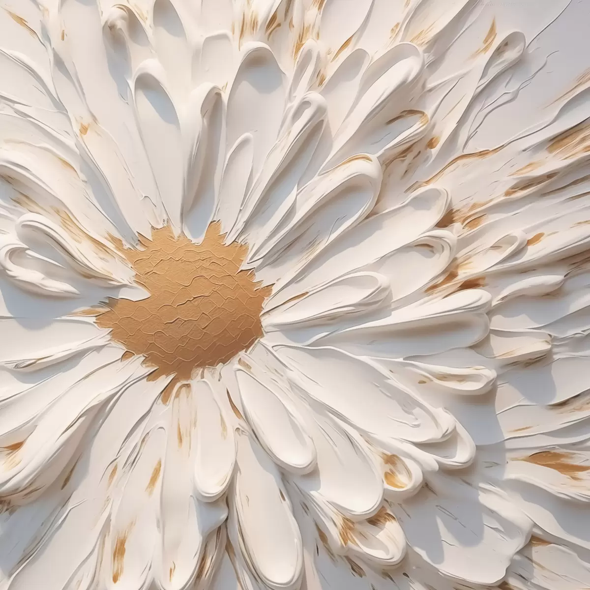 Het schilderij kan voorzichtig worden schoongeveegd met een droge zachte doek of spons; het wordt niet aanbevolen om natte producten te gebruiken. Het gebruik van een vochtige spons is alleen toegestaan als het schilderij gevernist is.