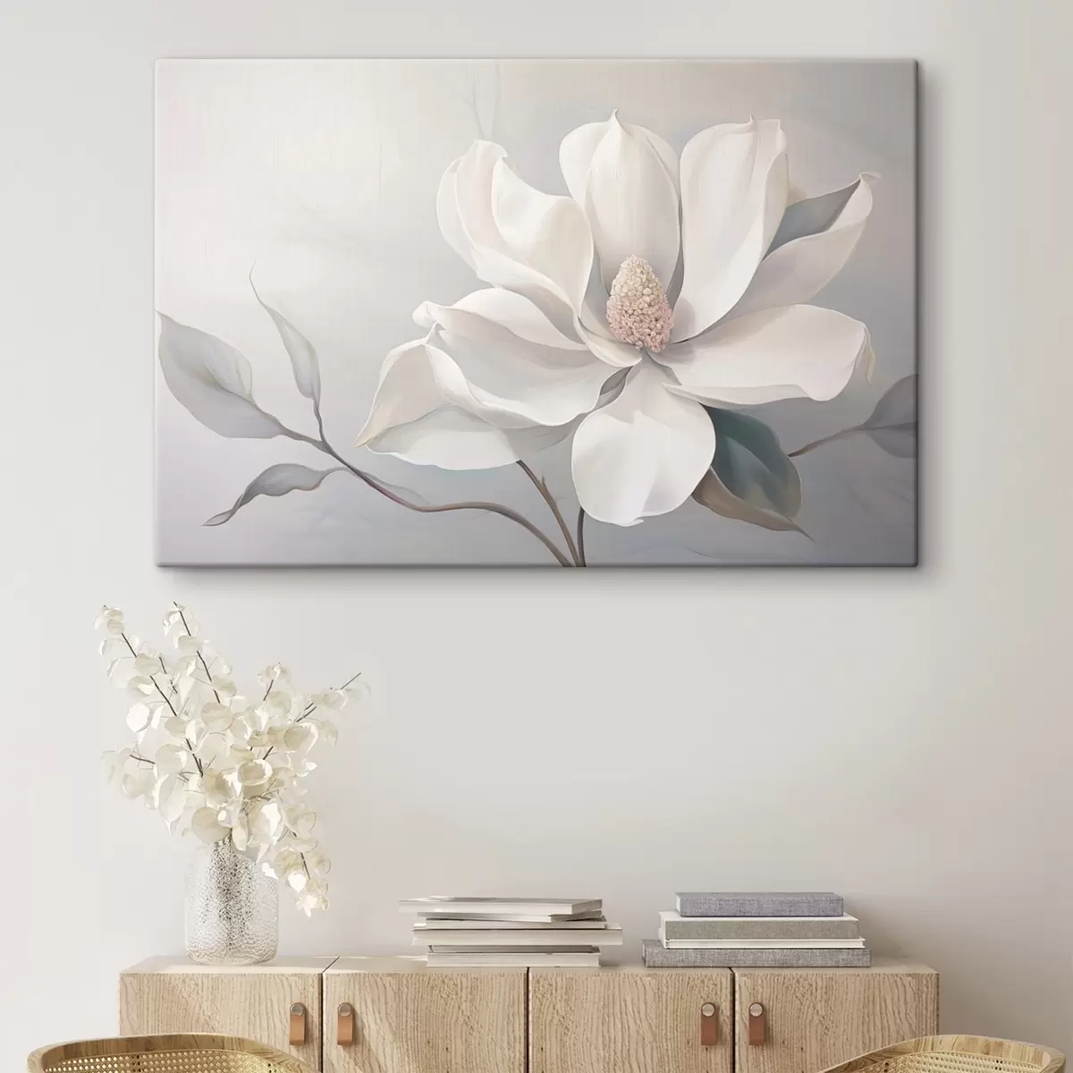 Schilderij Bloeiende witte bloem in pasteltinten Art. s44839