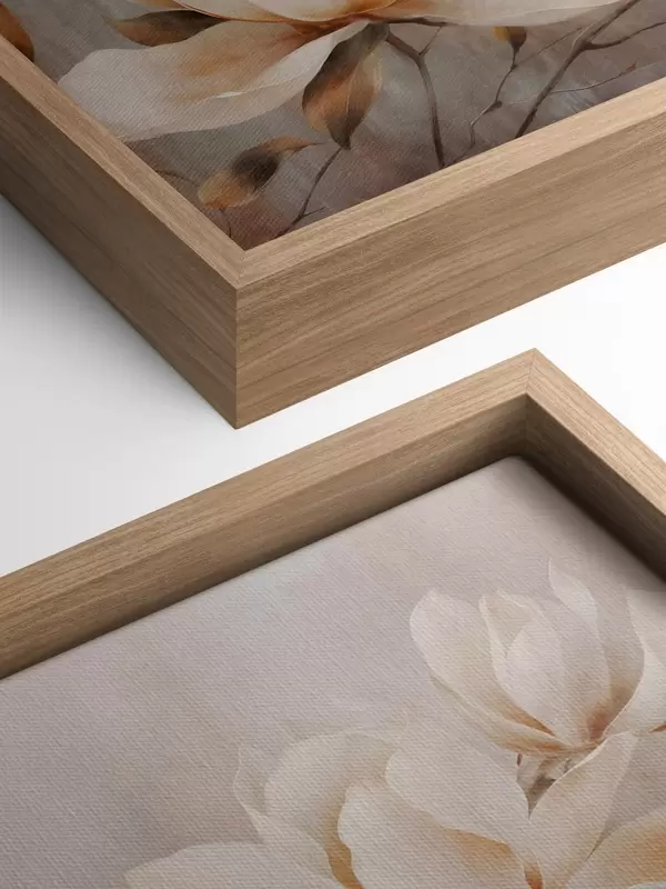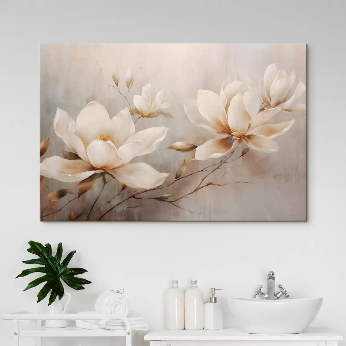 Schilderij Textured vintage witte magnolia bloemen op takken in een lichtbruine achtergrond Art. s44869