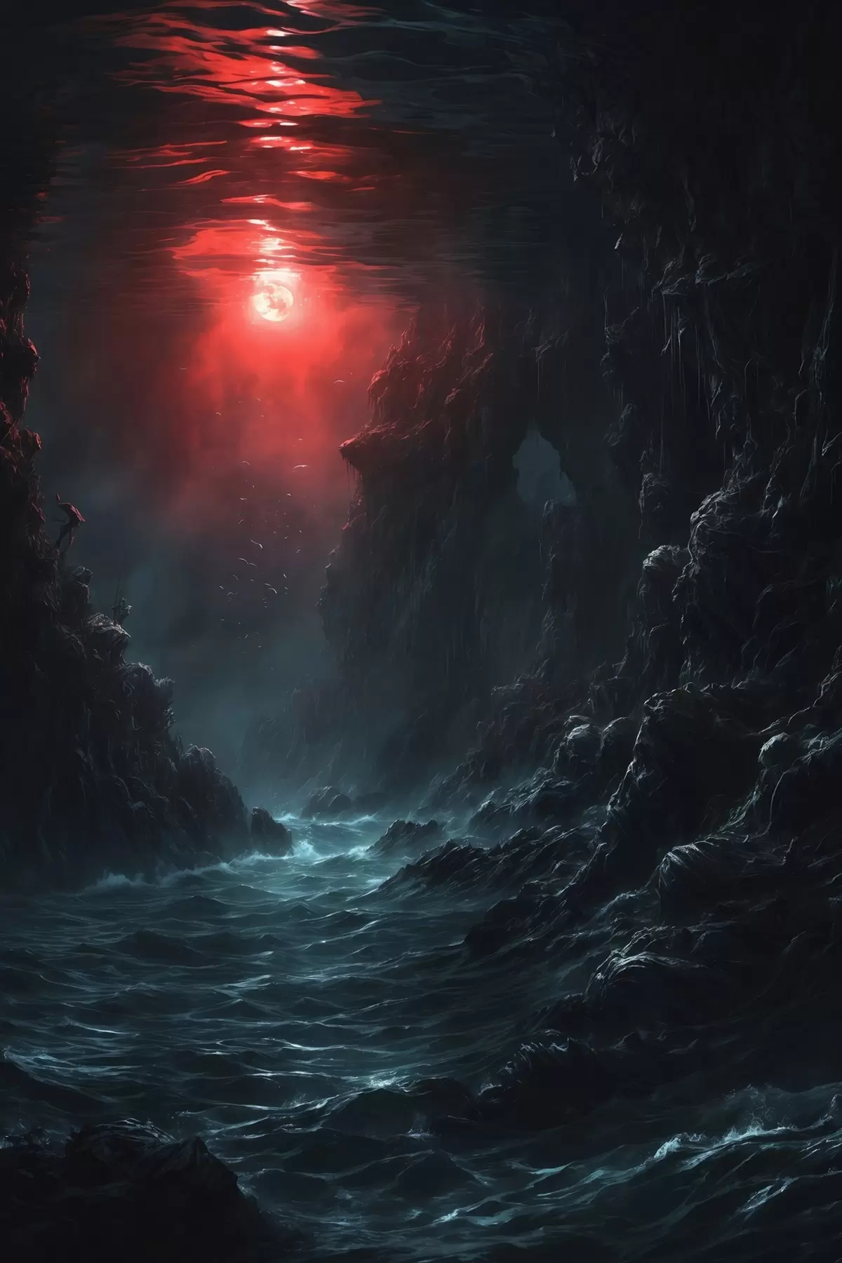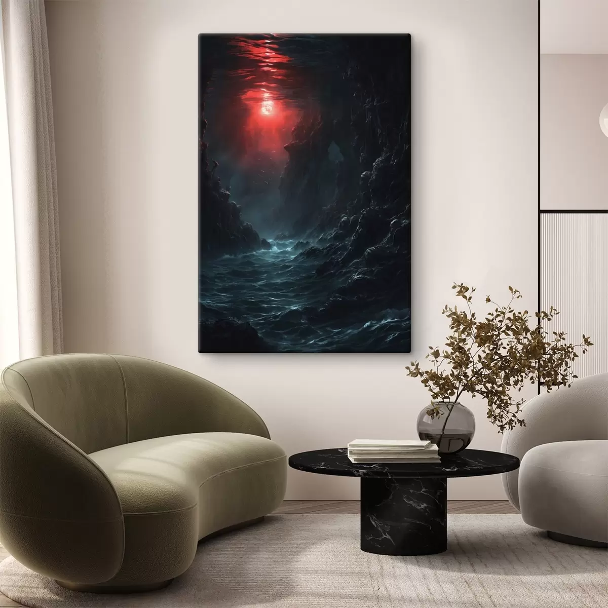 Schilderij Donkere zeekloof met rood licht van boven Art. s44870