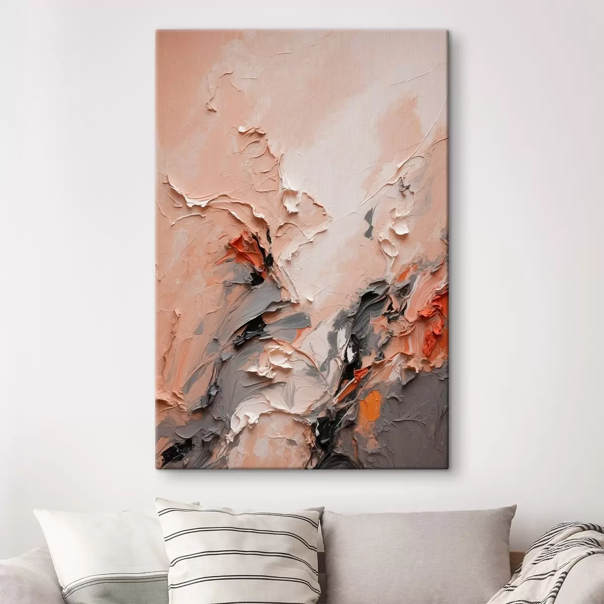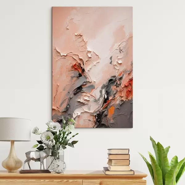 Schilderij Abstract in perzikkleurige grijstinten met structuurstrepen Art. s44873