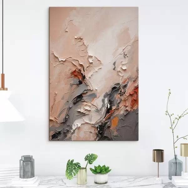 Schilderij Abstract in perzikkleurige grijstinten met structuurstrepen Art. s44873
