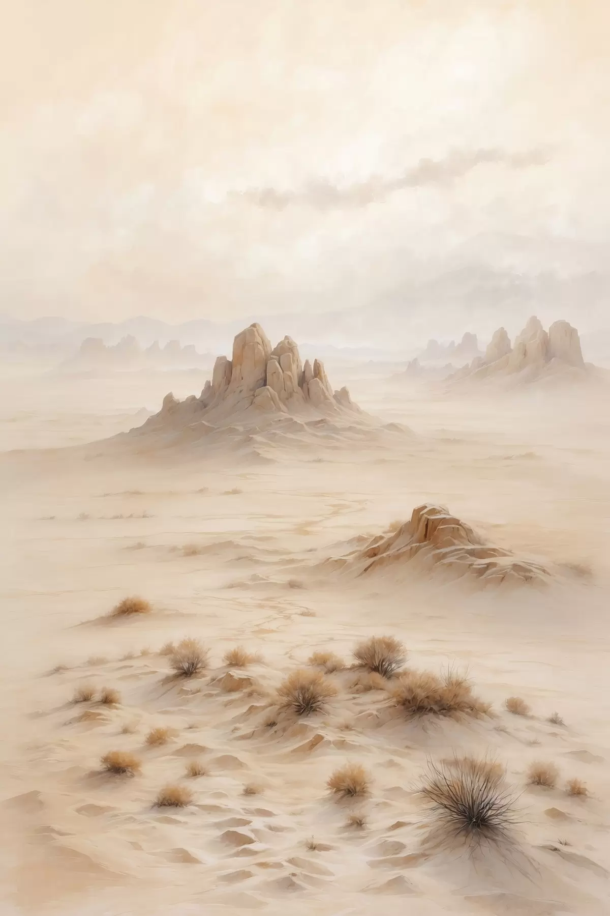 Schilderij Minimalistisch woestijnlandschap met bergrotsen Art. s44883