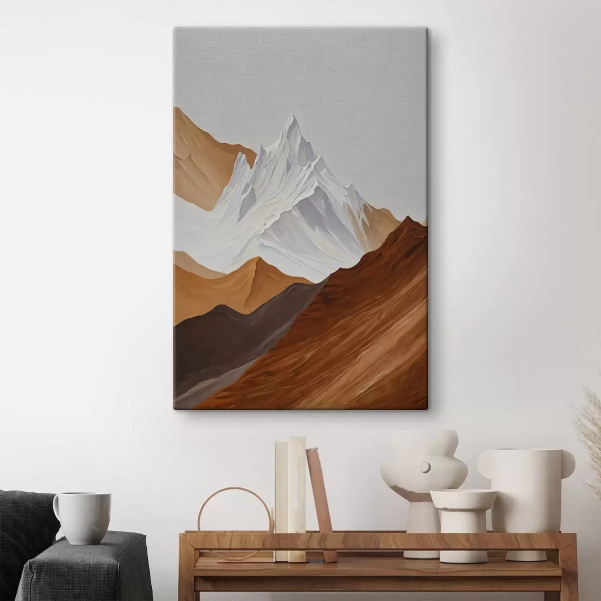 Schilderij Geometrisch berglandschap in bruin- en wittinten Art. s44896