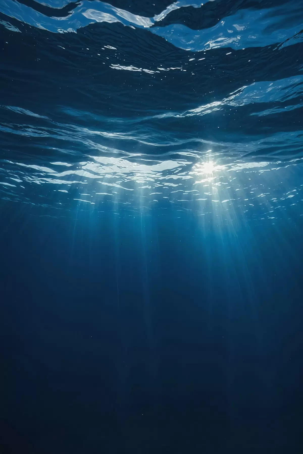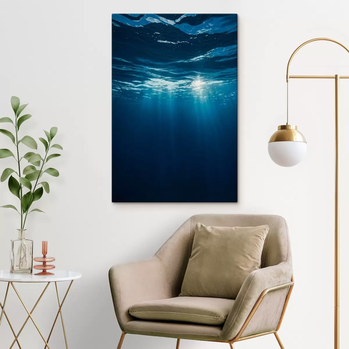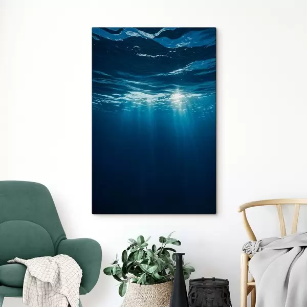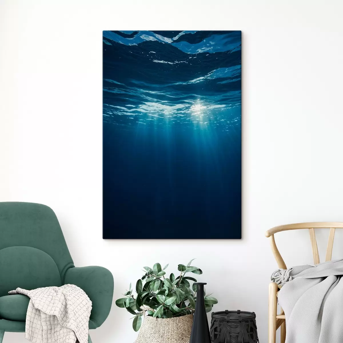 Schilderij Lichtstralen onder water in diepblauwe oceaan Art. s44897