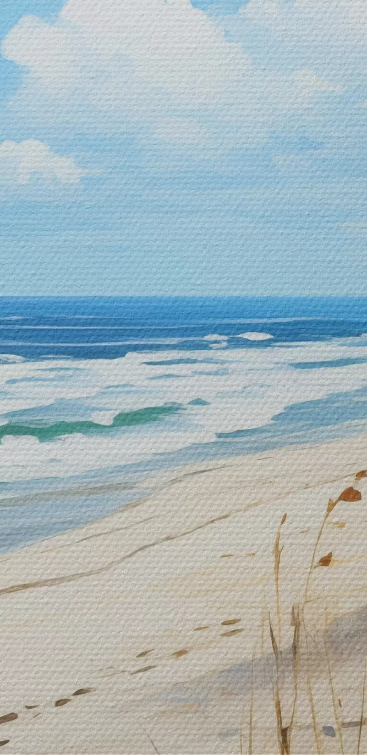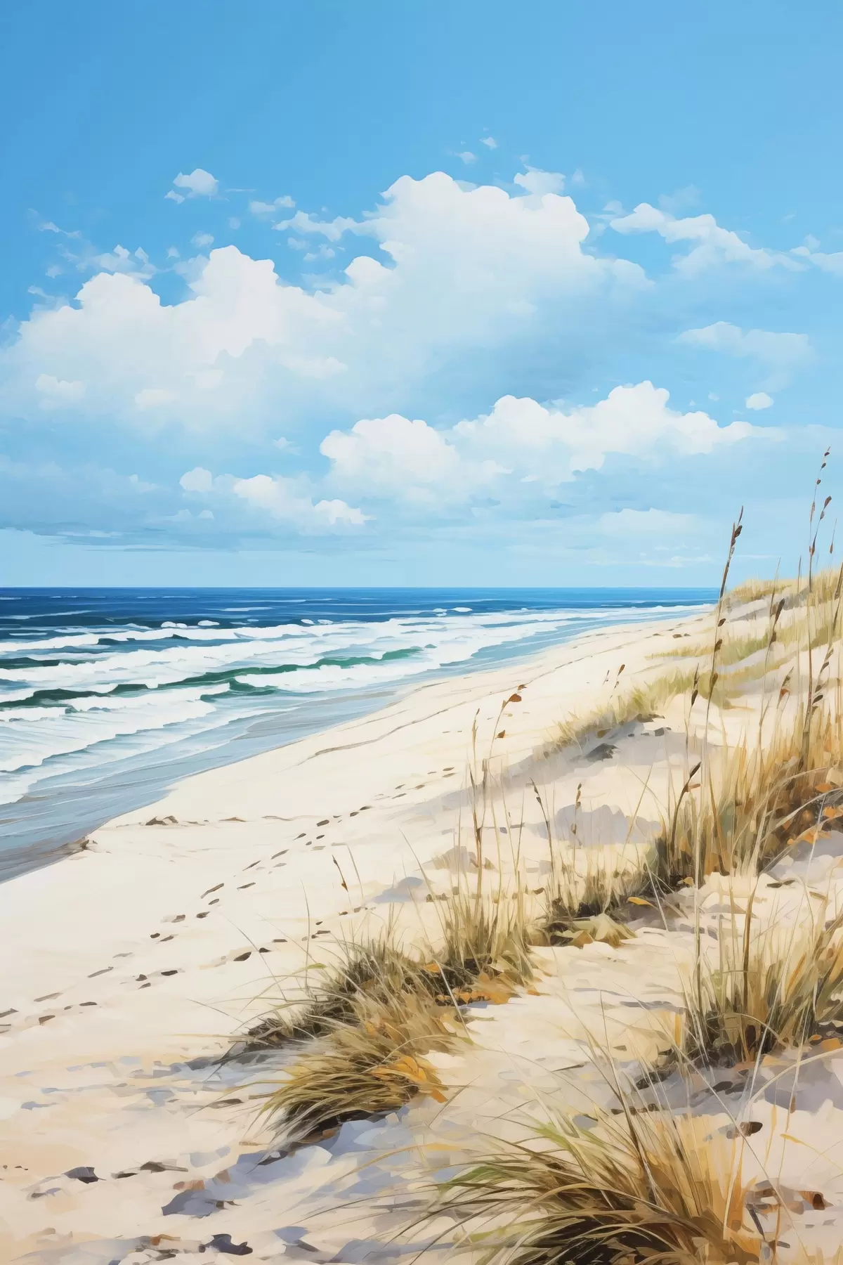 Schilderijen Gras aan de kust onder een blauwe hemel s44917
