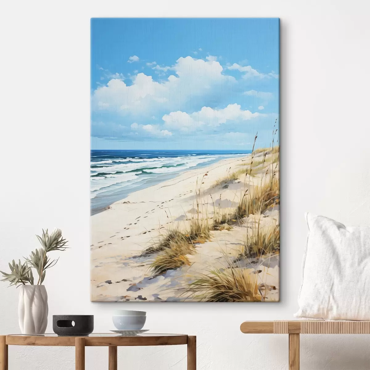 Schilderij Gras aan de kust onder een blauwe hemel Art. s44917