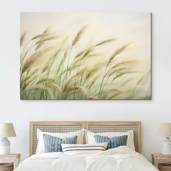 Schilderijen Korenveld met gele en groene korenaren, zachte penseelstreken en een licht kleurenpalet, natuurlijke sfeer s44923