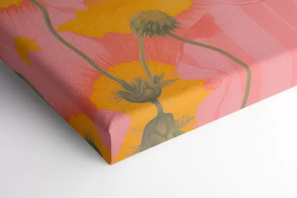 Schilderijen Een decoratief minimalistisch portret van Aziatisch meisje in een veld van gele en roze bloemen s44924