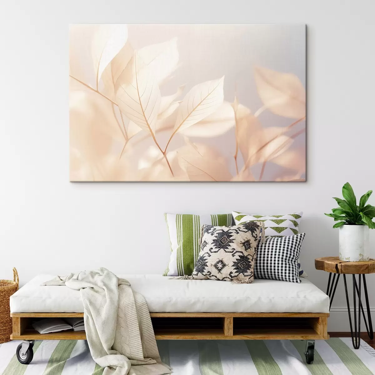 Schilderij Doorschijnende bladeren met ingewikkelde aderpatronen, zacht pastelkleurenpalet, etherische verlichting, minimalistische compositie Art. s44928