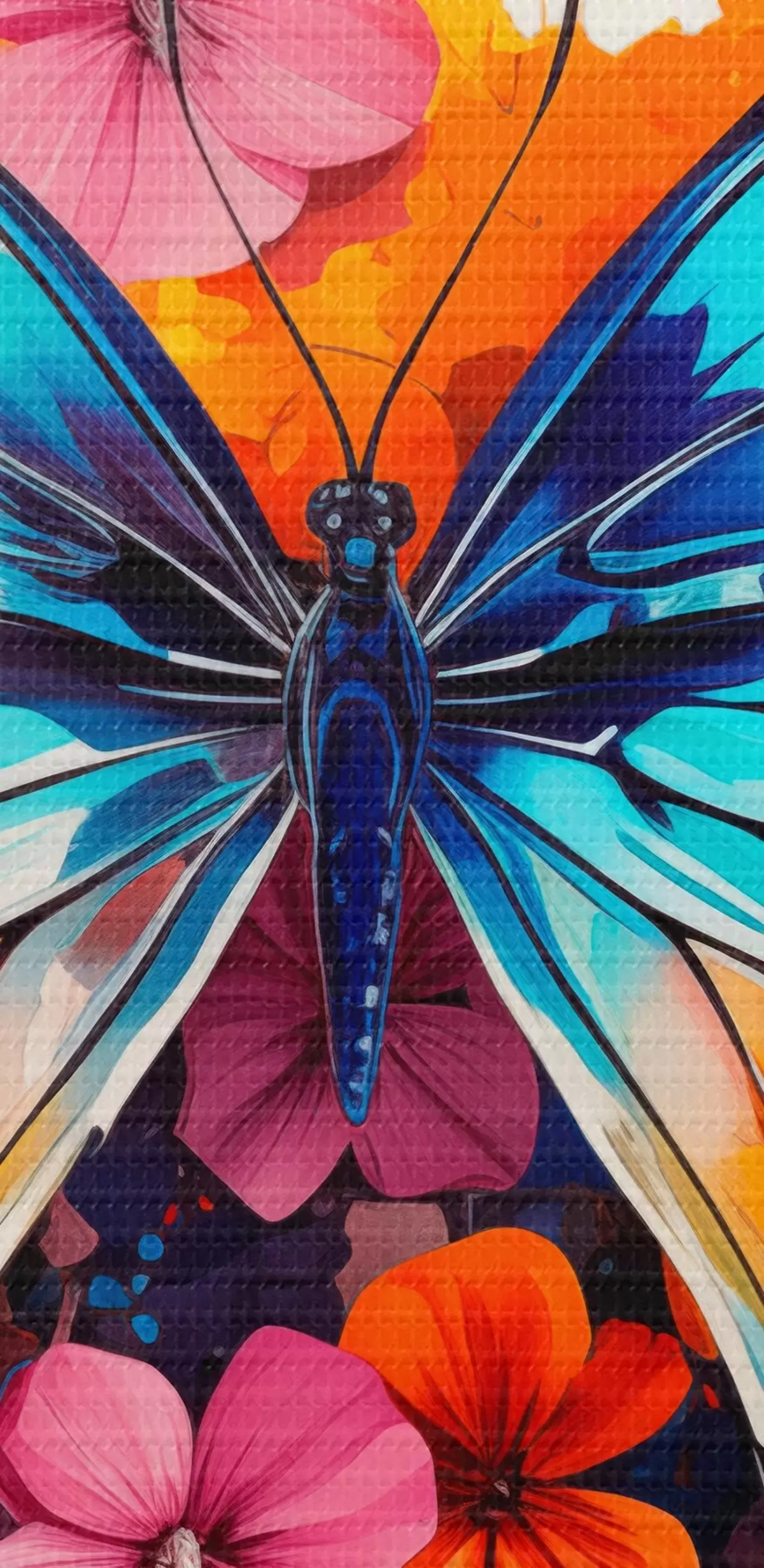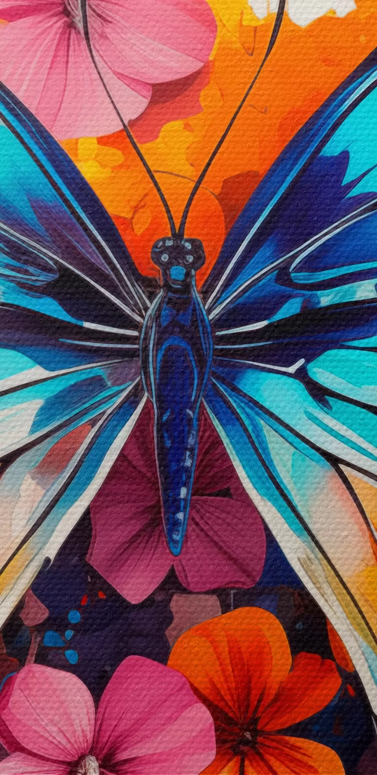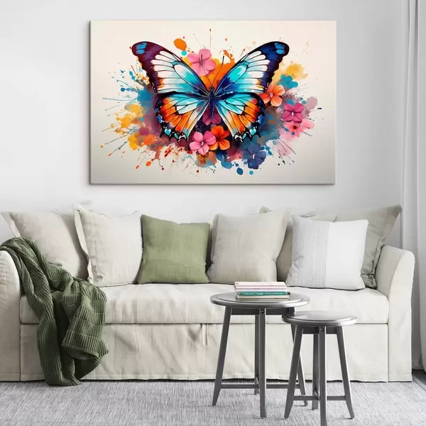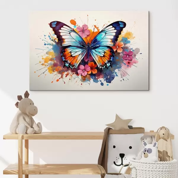 Schilderij Dynamische compositie van een vlinder en bloemenvlekken in kunststijl Art. s44943