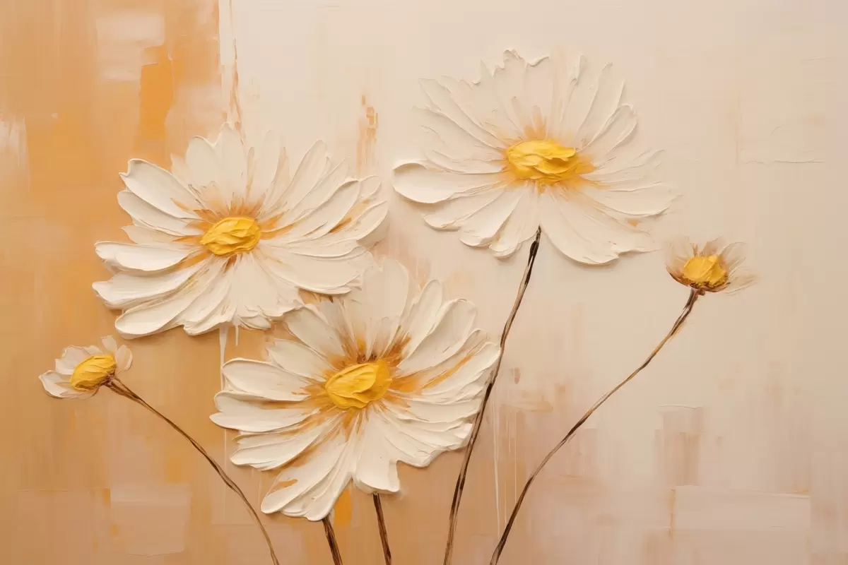 Schilderijen Abstracte bloemen op een oranje achtergrond in olieverfstijl s44945