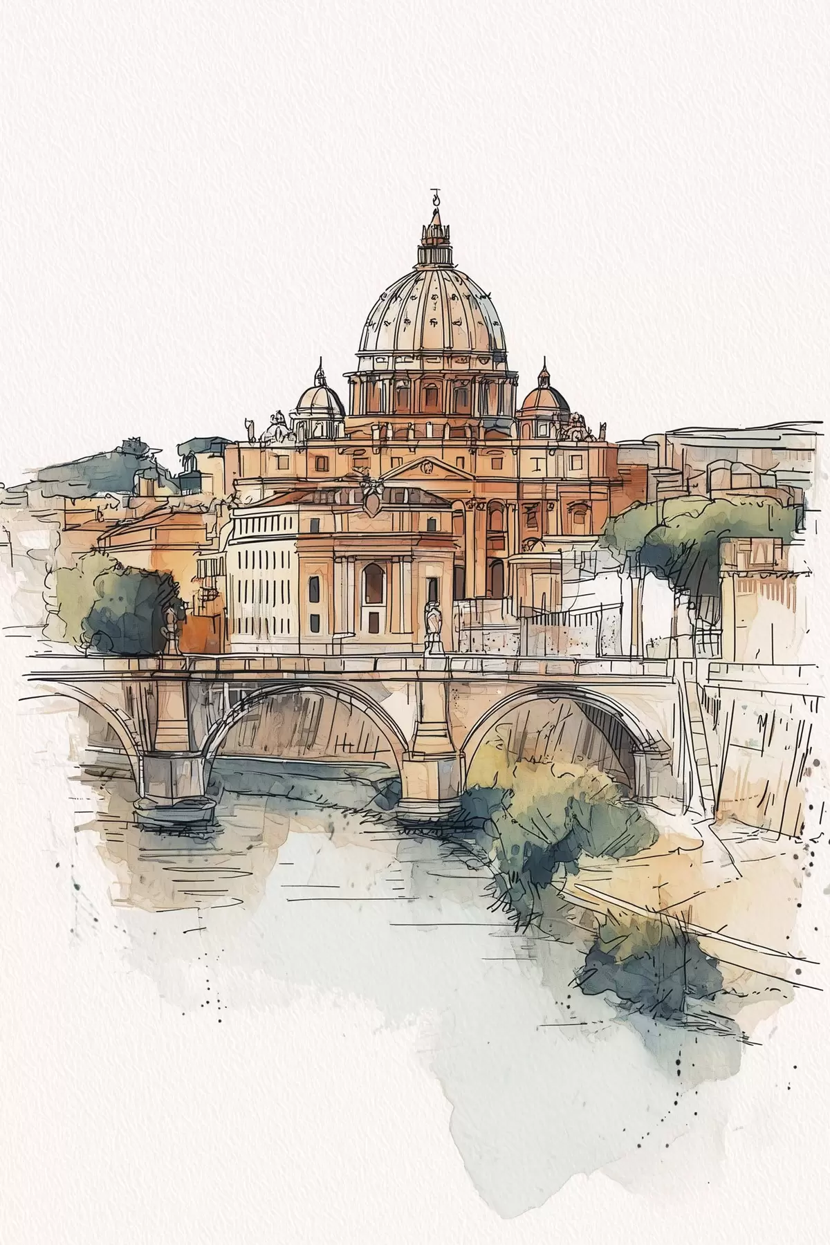 Schilderijen Aquarel Rome stad, schets tekening, architectuur s44983