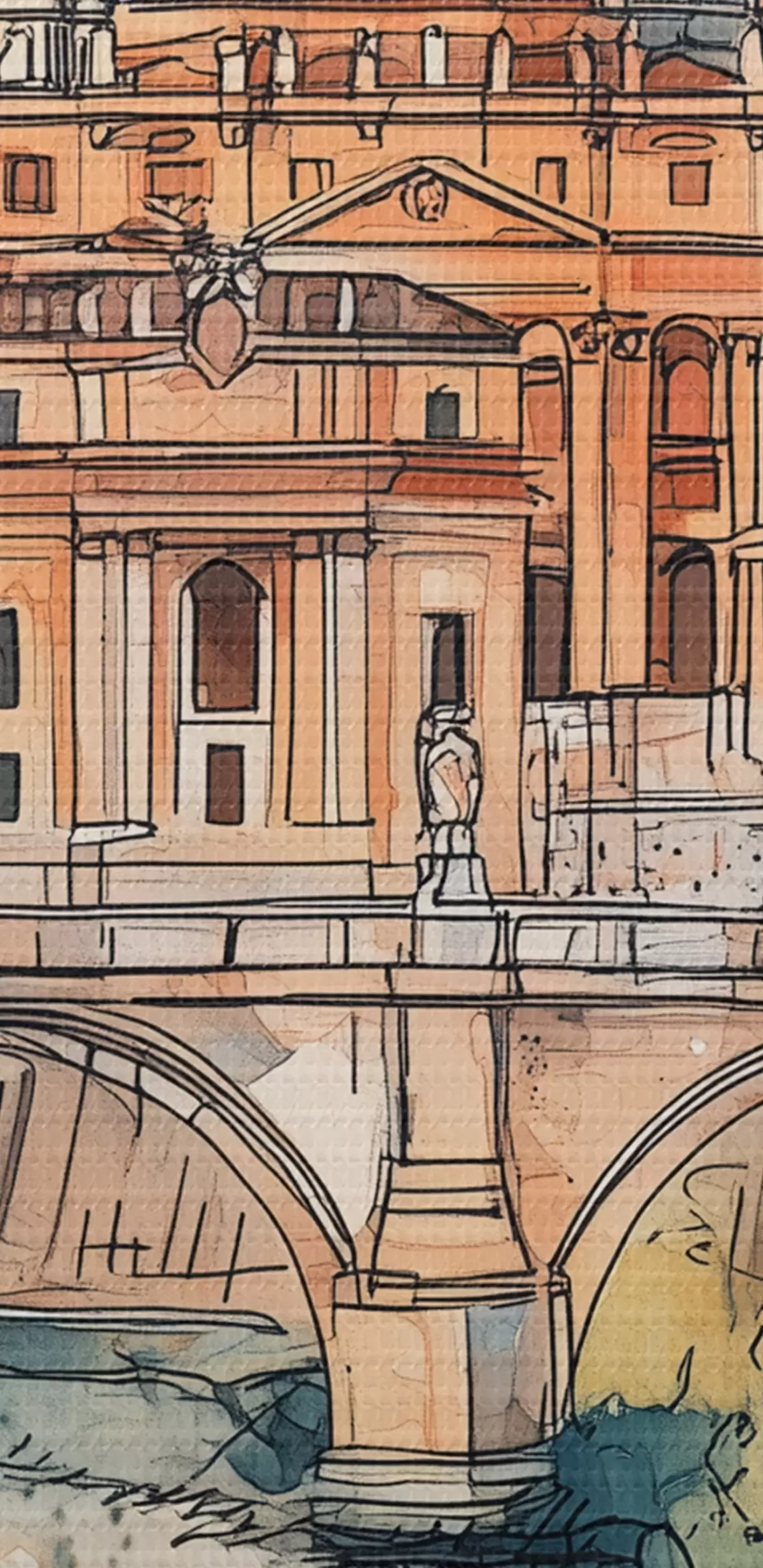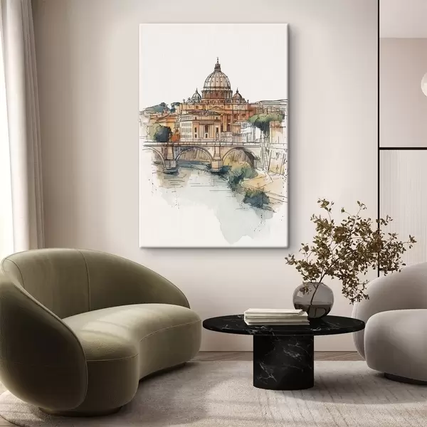 Schilderij Aquarel Rome stad, schets tekening, architectuur Art. s44983