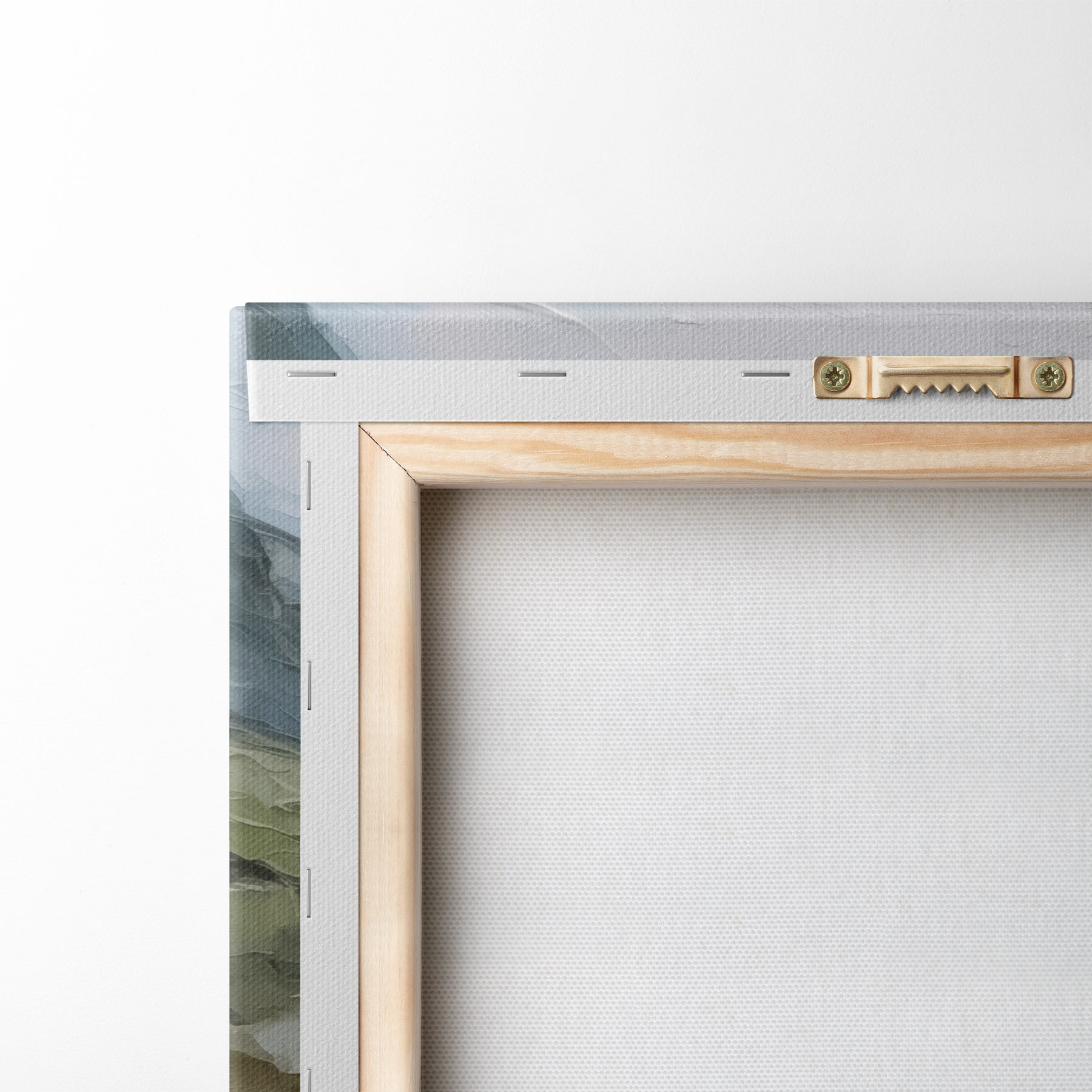 Je kunt het schilderij ophangen aan schroeven. Hiervoor leveren we bevestigingen bij onze foto's, zodat je de foto gemakkelijk kunt ophangen.