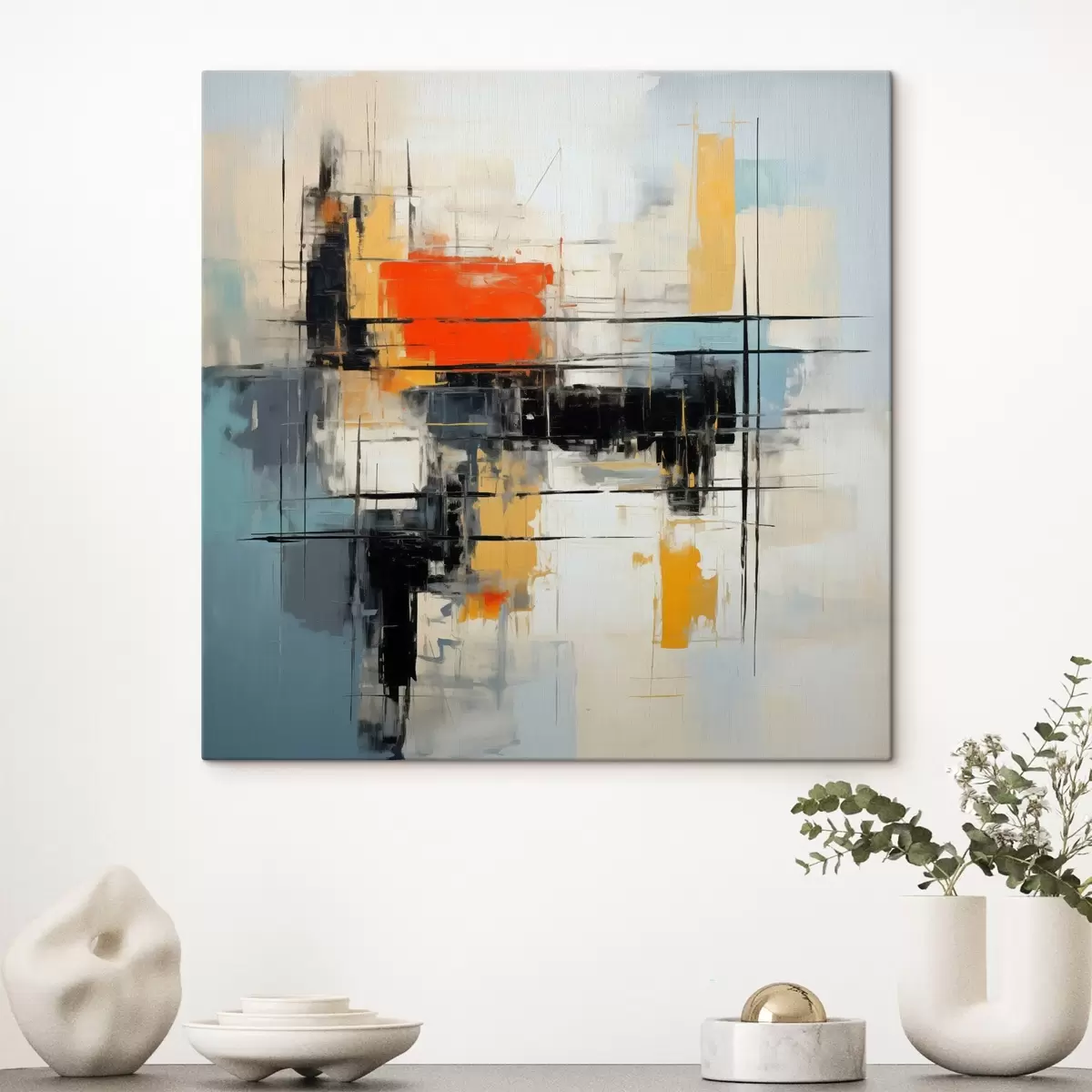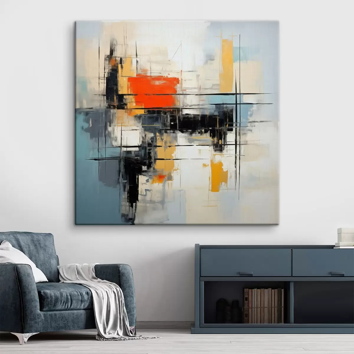 Schilderij Dynamisch doek in moderne stijl met scherpe streken Art. s45040