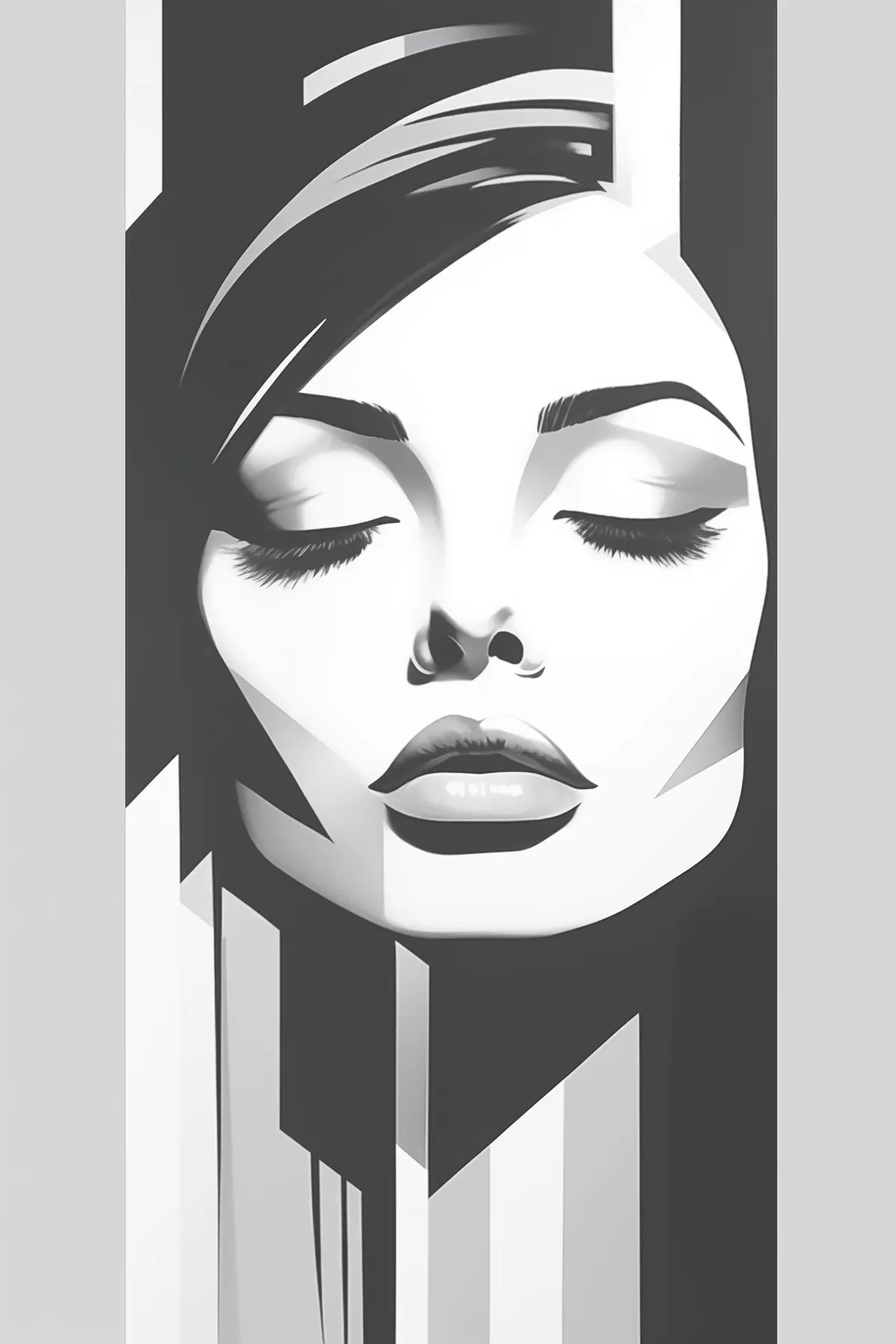 Schilderij Zwart-wit gezicht met gesloten ogen Art. s45075