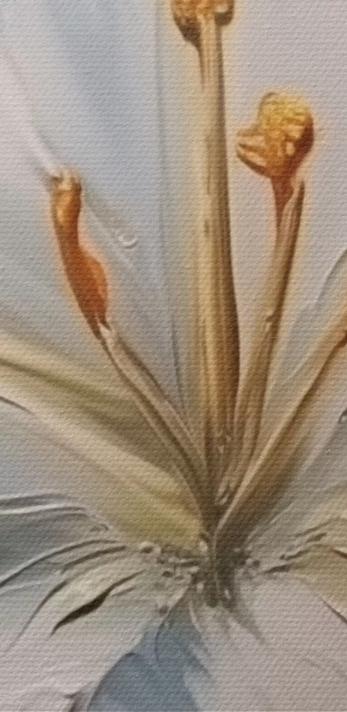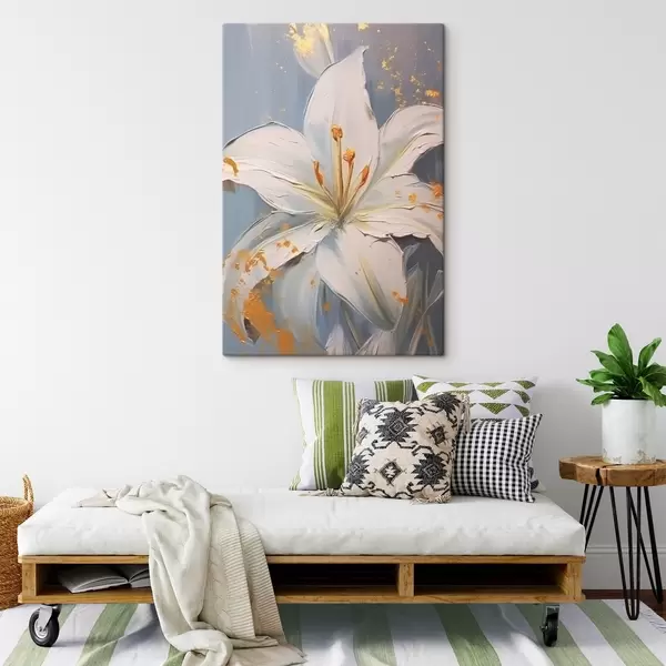 Schilderij Witte lelie met gele accenten op blauwe achtergrond Art. s45078