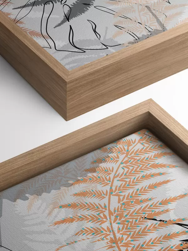 Schilderij varen, abstracte bladeren, patroon, plat ontwerp, contrast, grijstinten, botanisch, overlay Art. s45101