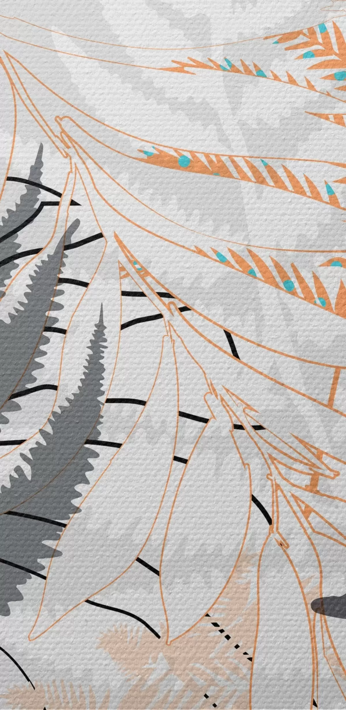 Schilderijen varen, abstracte bladeren, patroon, plat ontwerp, contrast, grijstinten, botanisch, overlay s45101