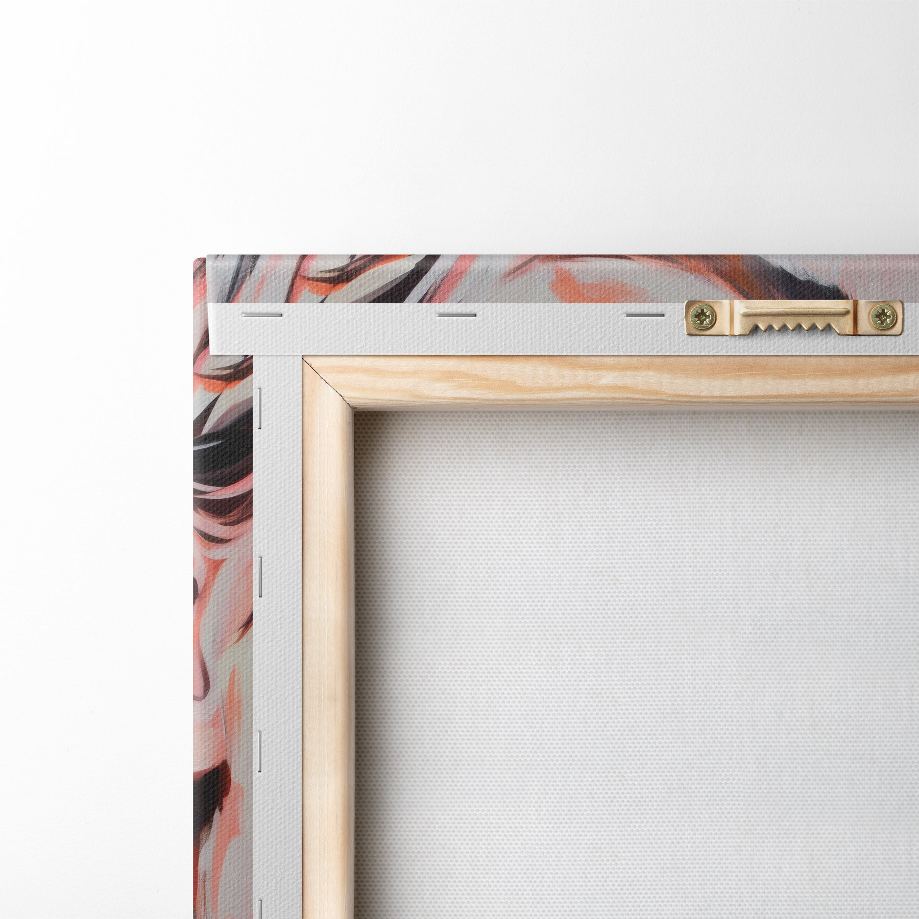 Om het doek op te spannen op spielatten zonder de afbeelding te beschadigen, gebruiken we gespiegeld beeld.