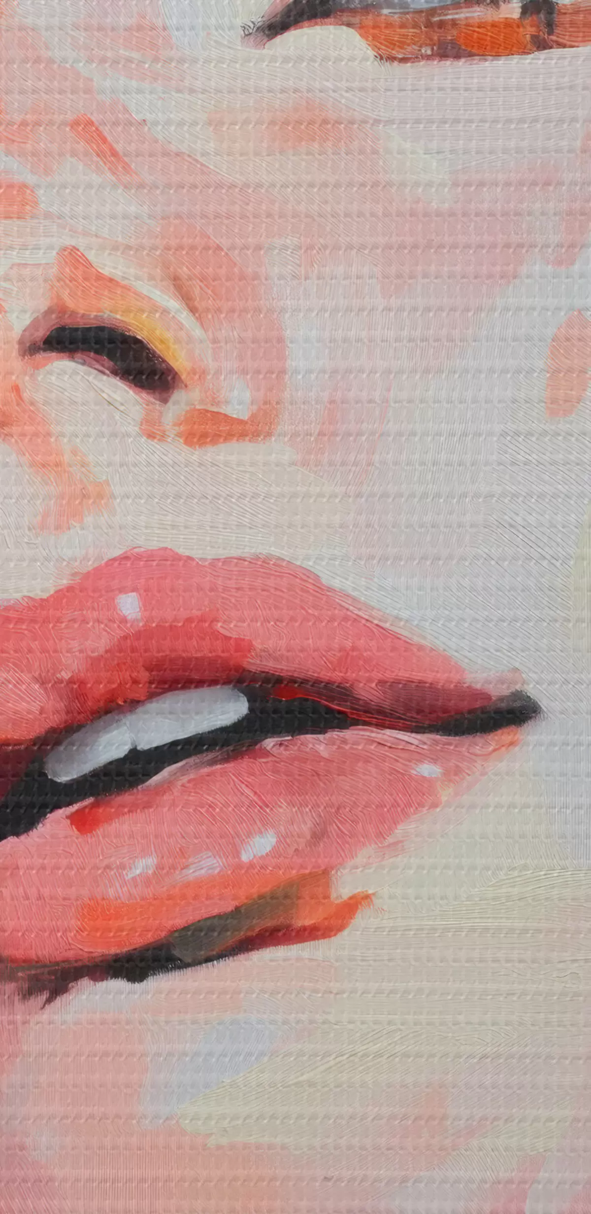 De fijne weving van draden op dit doek lijkt op het oppervlak van professionele schildersdoeken.
