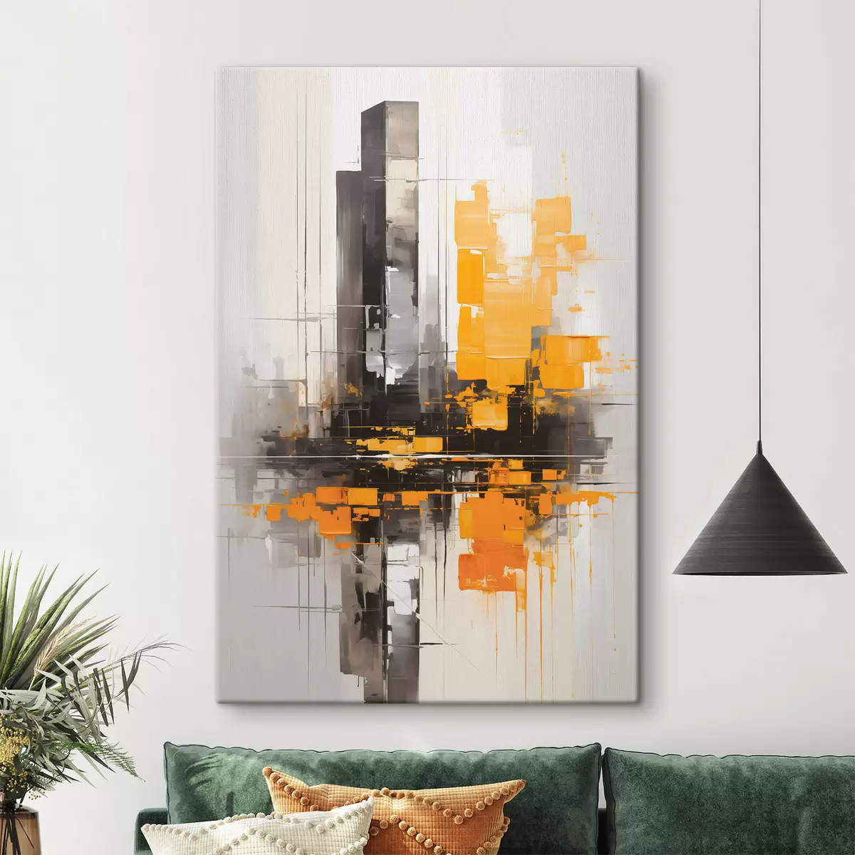 Het schilderij kan direct na ontvangst worden opgehangen. Het schilderij wordt opgespannen op een 2 cm breed houten spieraam.