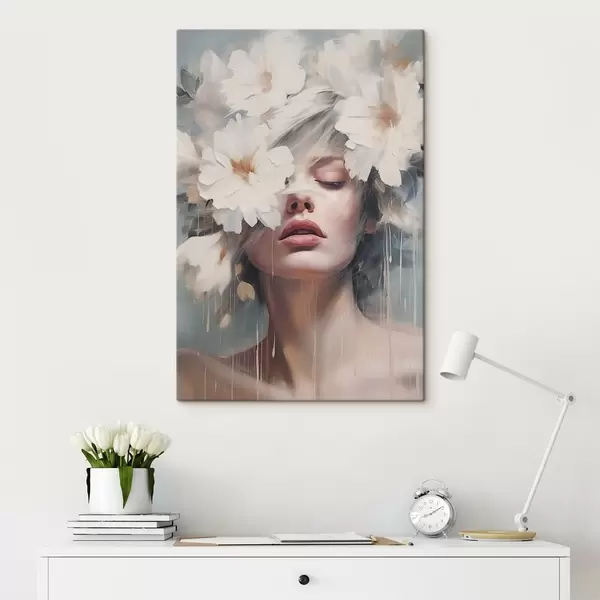Schilderijen Vrouwenportret met witte bloemen s45219